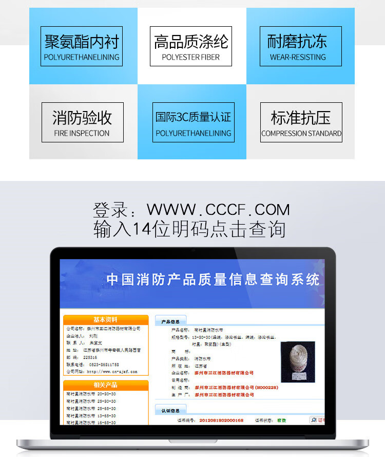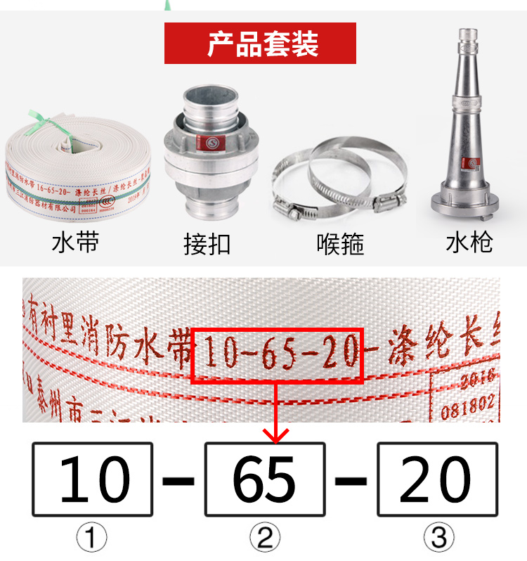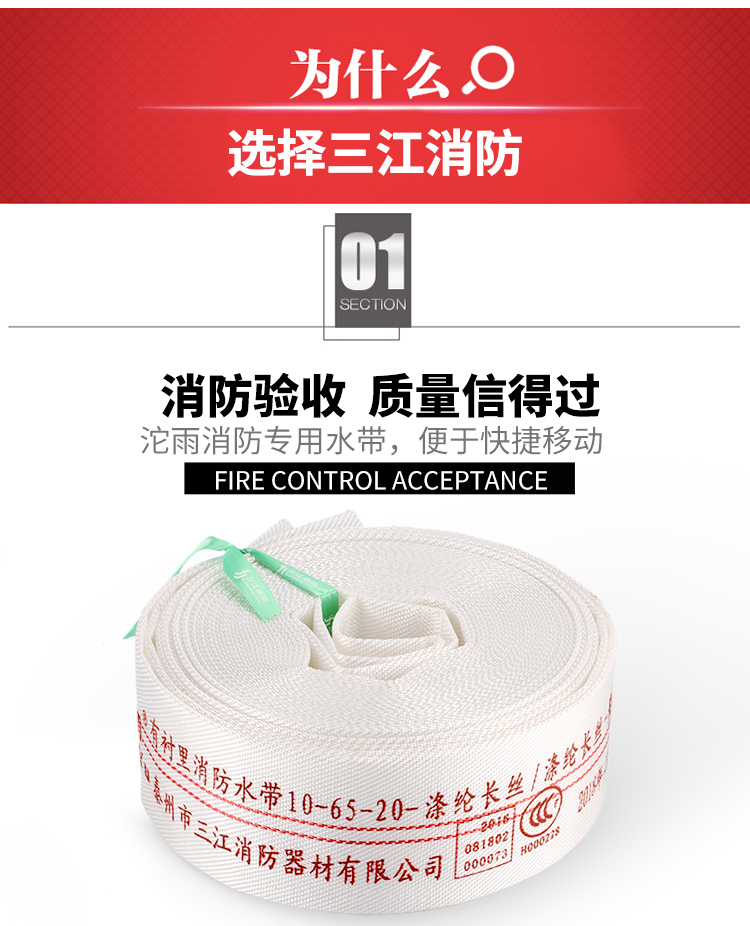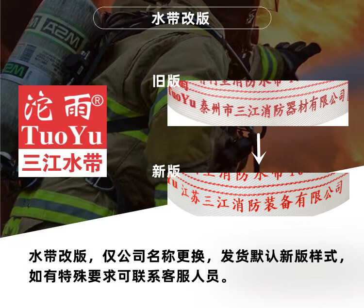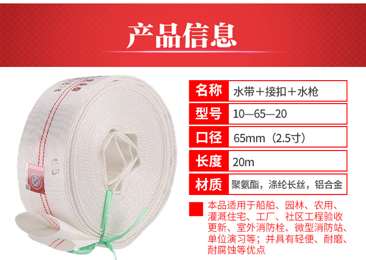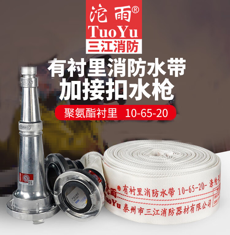 沱雨(TUOYU) 消防水带 三江消防10-65-20抗高压耐磨聚氨酯10型65mm(2.5英寸)20米【水带+接扣+水枪】