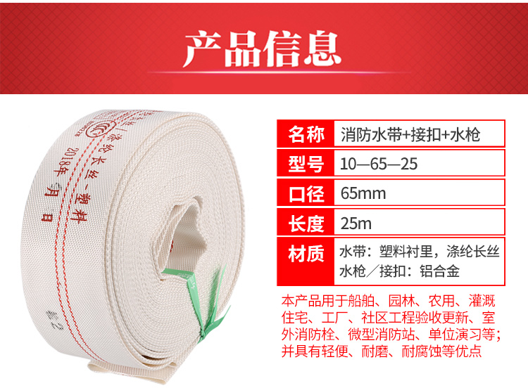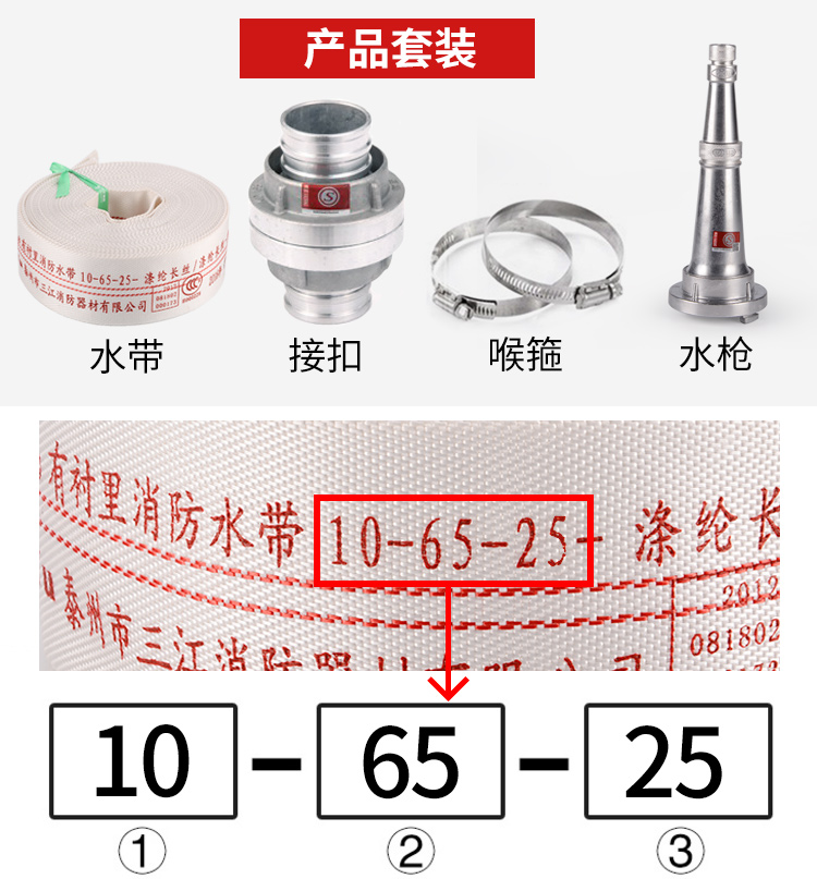 沱雨(TUOYU) 消防水带 三江消防10-65-25抗高压耐磨PVC塑料10型65mm(2.5英寸)25米【水带+接扣+水枪】