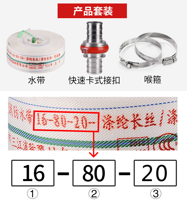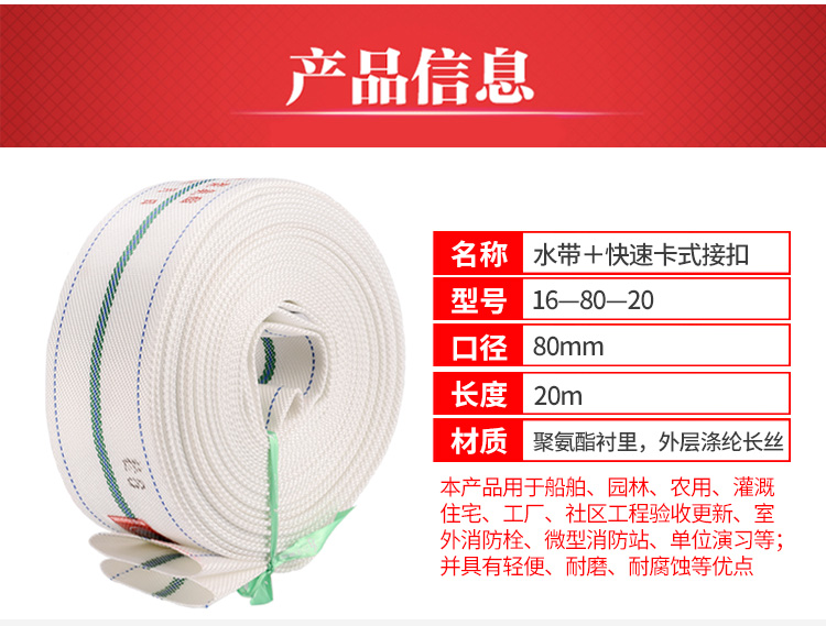 沱雨(TUOYU) 消防水带 三江消防16-80-20抗高压耐磨聚氨酯16型80mm(3英寸)20米【水带+快速卡式接扣】