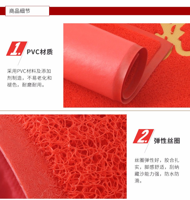 爱柯部落 PVC丝圈地垫 出入口除尘刮沙地毯1.2m×1.8m防尘防滑地毡室外楼梯走廊进门迎宾垫红色可定制110159