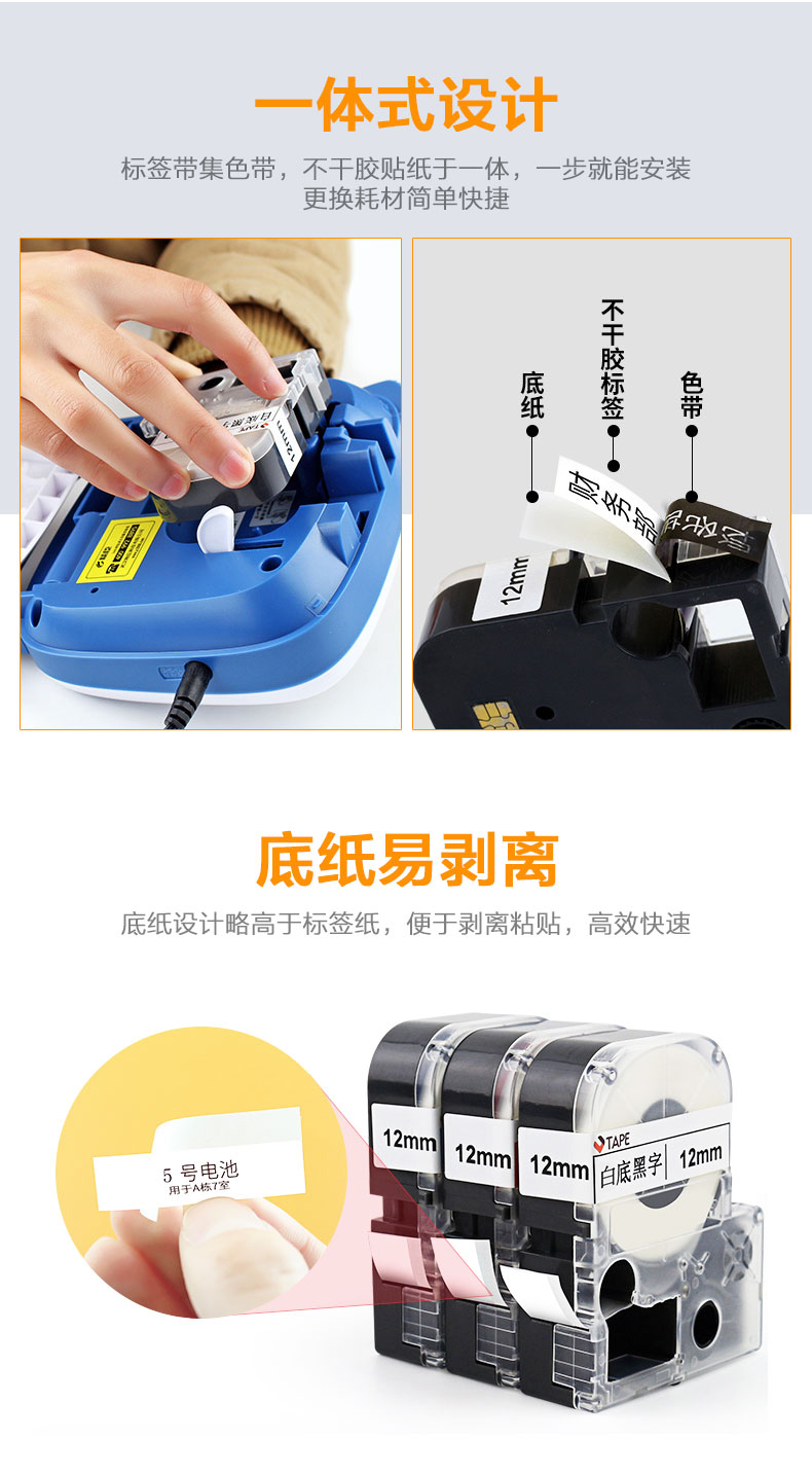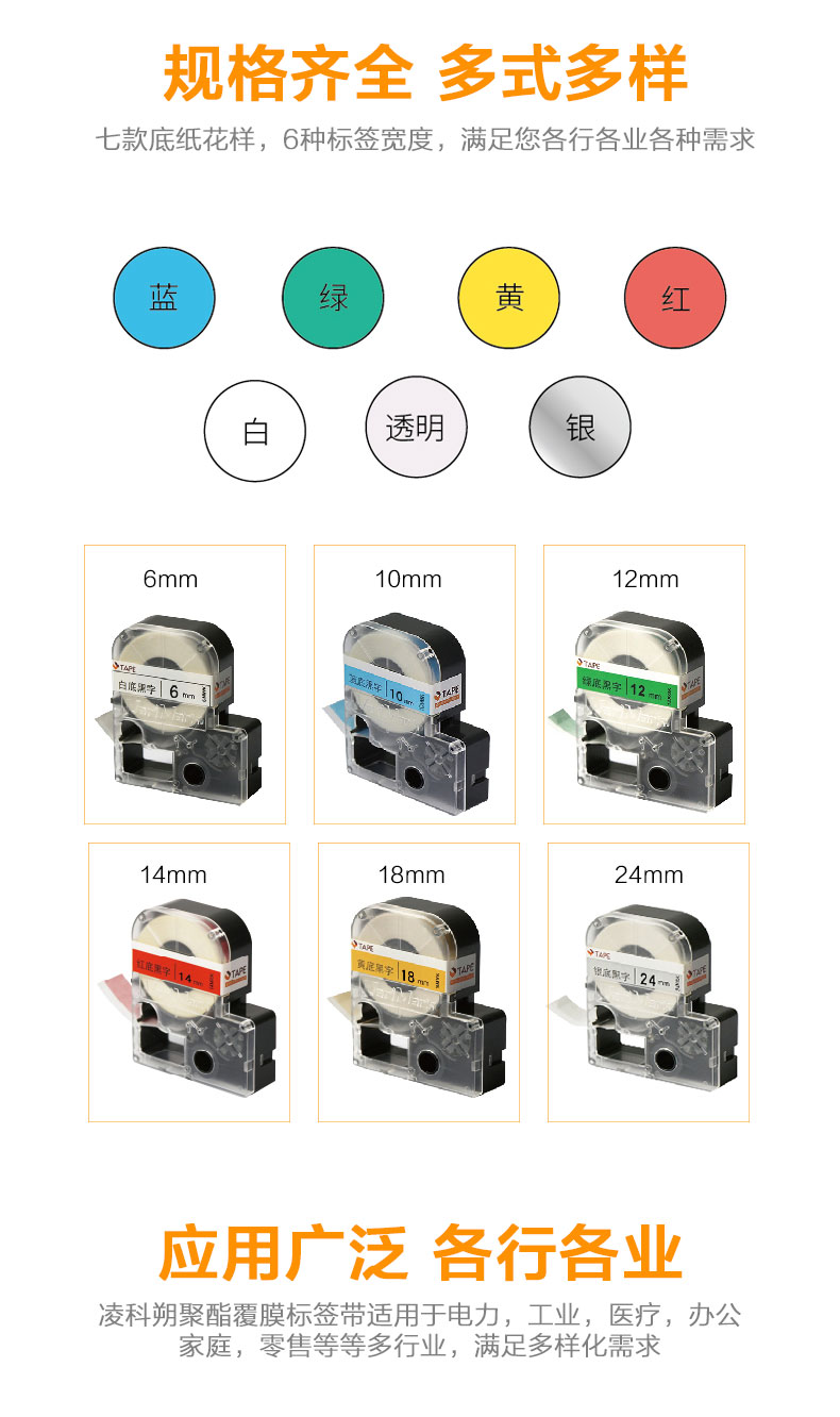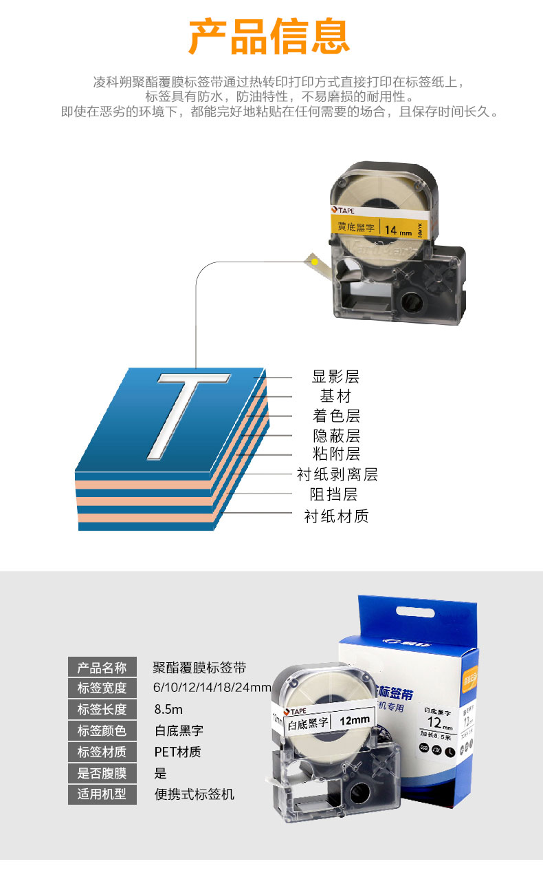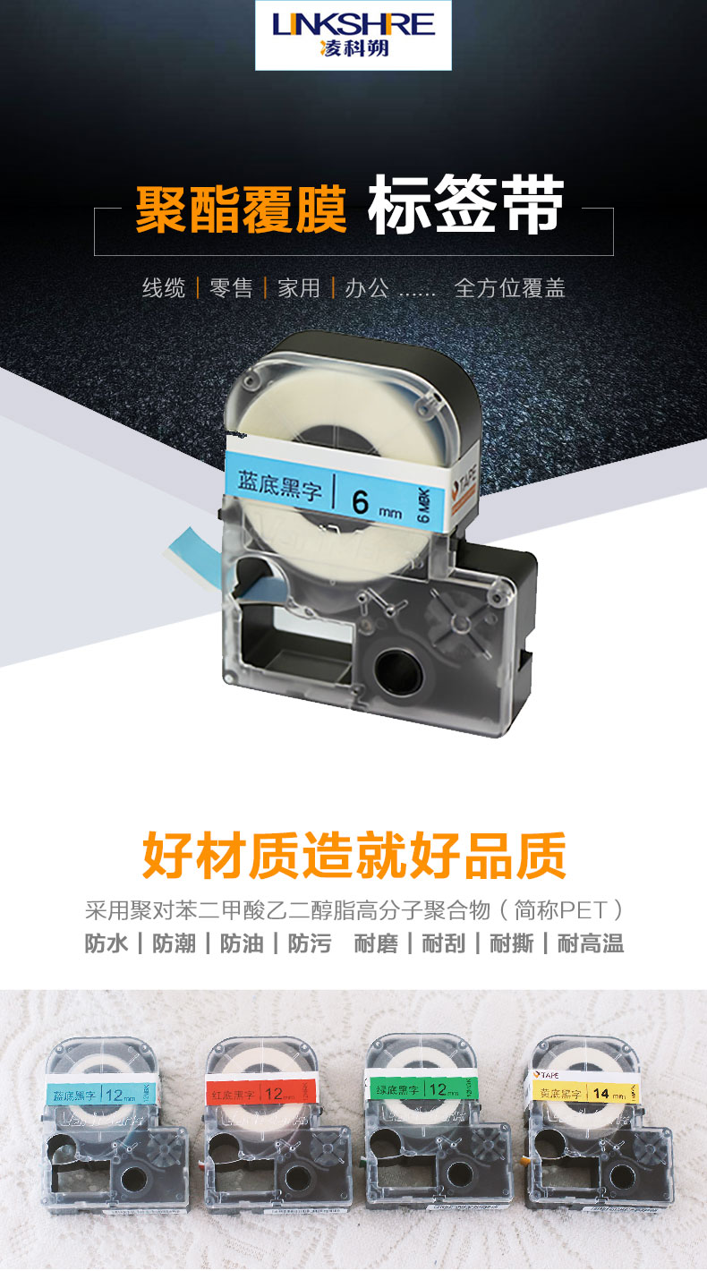 凌科朔(LINKSHIRE)聚酯覆膜色带 白底黑字 12mm 打印纸色带不干胶防水价格便利贴打印纸