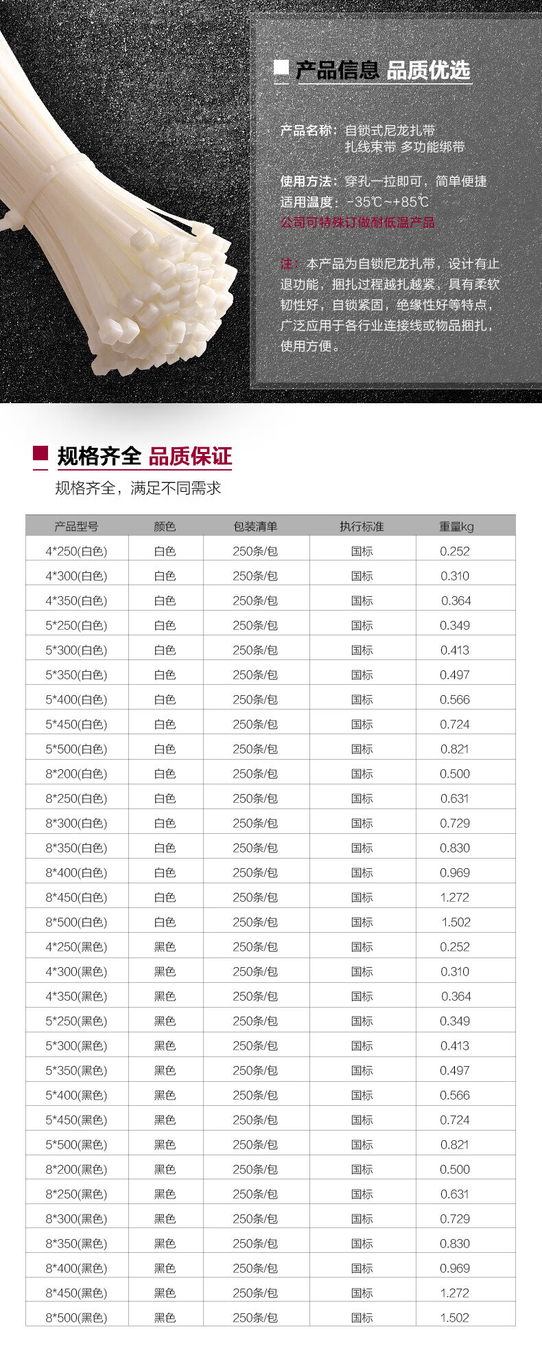 凤凰 自锁式尼龙扎带 5.0*400mm 黑色 250条/包 国标塑料理线带 扎线束带 多功能绑带