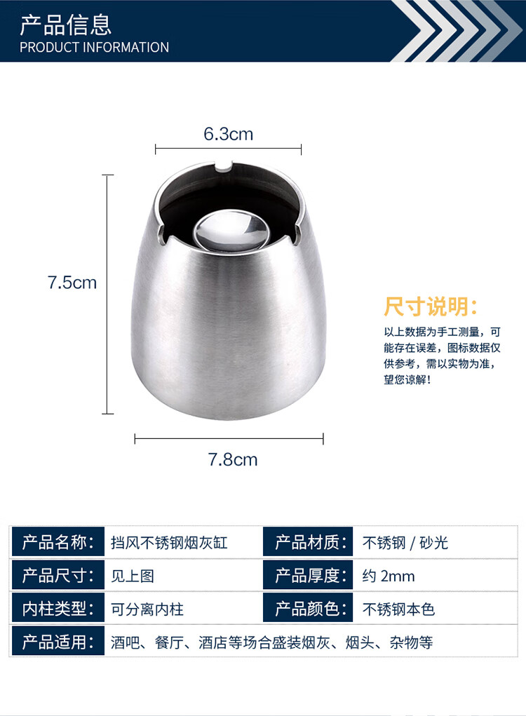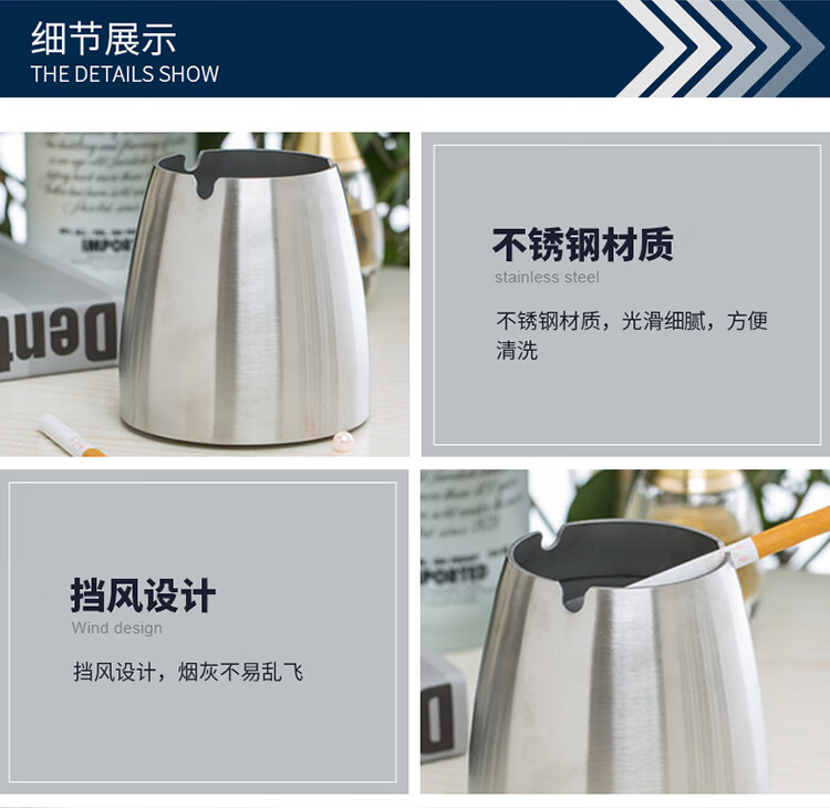 科力邦(Kelibang) 烟灰缸 不锈钢商用大号加厚防风烟灰缸 酒店宾馆会议室酒吧台露天餐厅厚底烟盅 KB3221