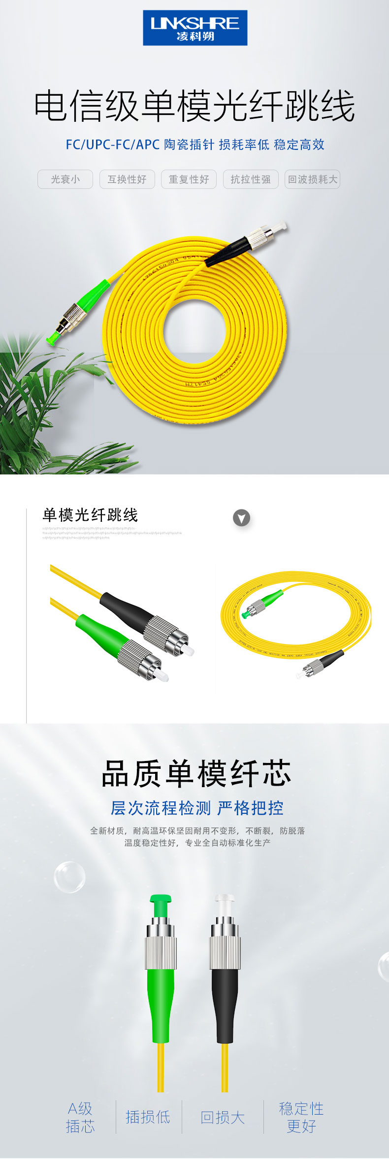 凌科朔(LINKSHIRE)电信级广电CATV专用斜八度APC插芯端面网线光纤跳线尾纤 单模单芯 FC/UPC-FC/APC 1.5米