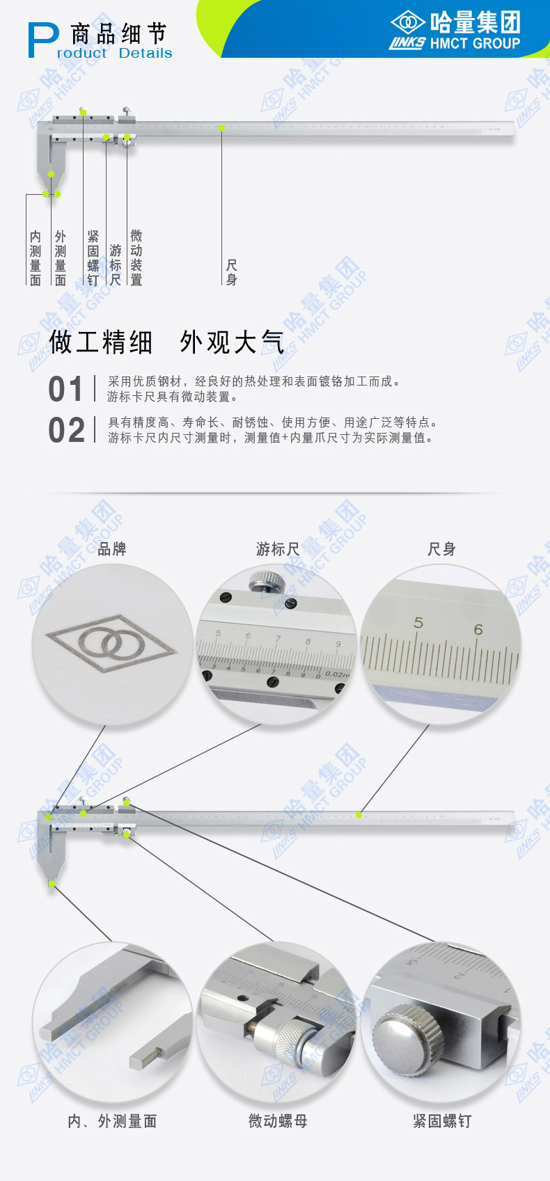 哈量 连环四用三用游标卡尺 耐腐蚀 优质不锈钢 0-200_0.02mm
