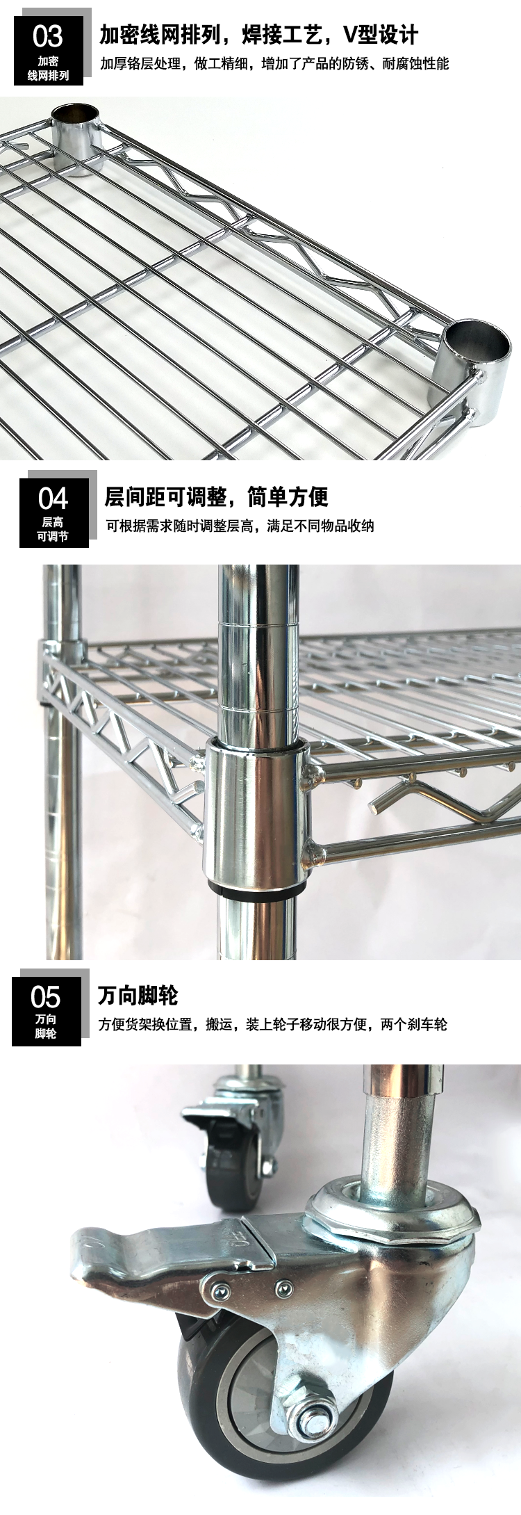 川井(WELLAND)工业镀铬货架 置物架 仓储重型五层架 储物架展示架收纳架子 25mm管径106*45*180cm