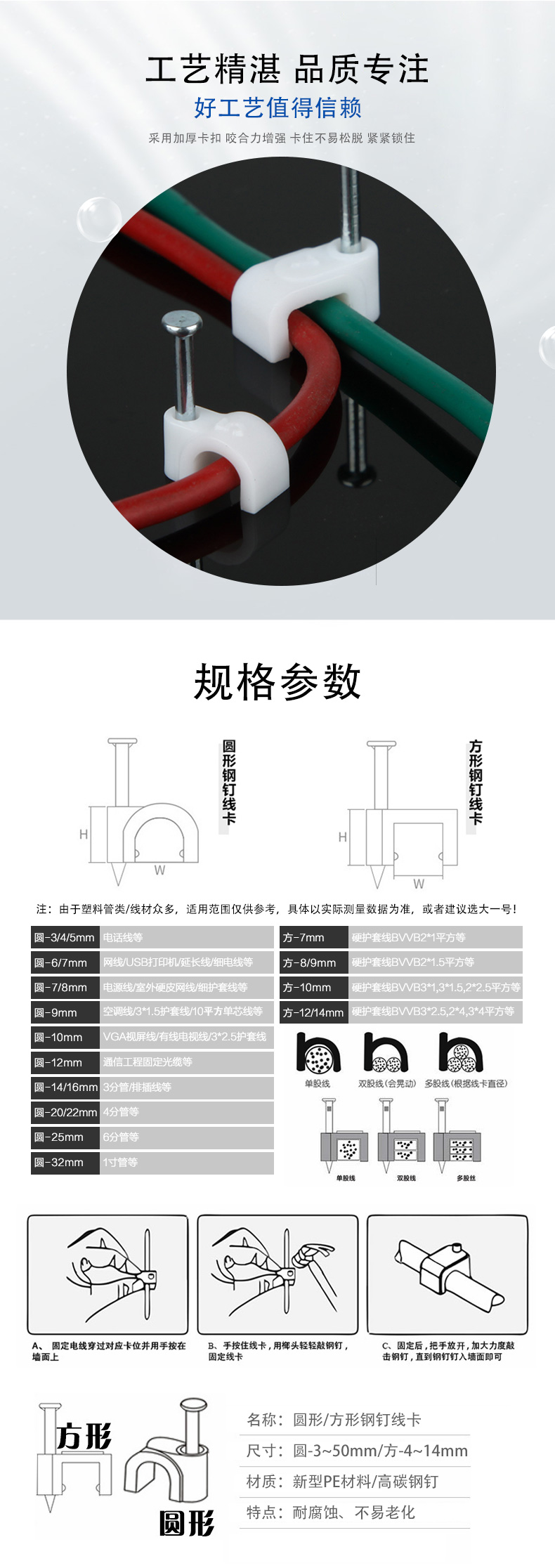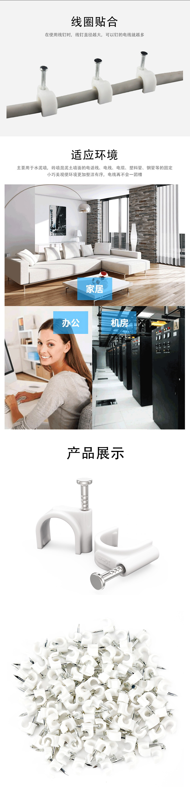 凌科朔(LINKSHIRE)钢钉线卡线钉子网线钉子6 8 10 12mm宽带电话电线卡墙钉线扣固线钉压线卡圆形6mm 100只