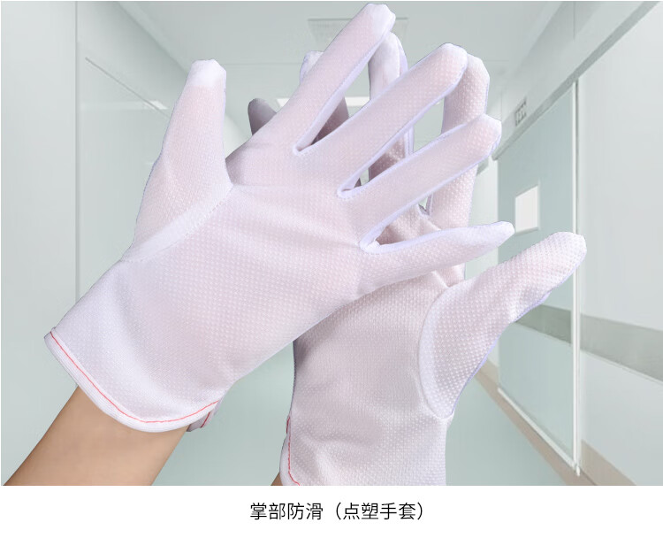 路宁 点塑礼仪作业手套 点珠防滑 劳保手套 10付