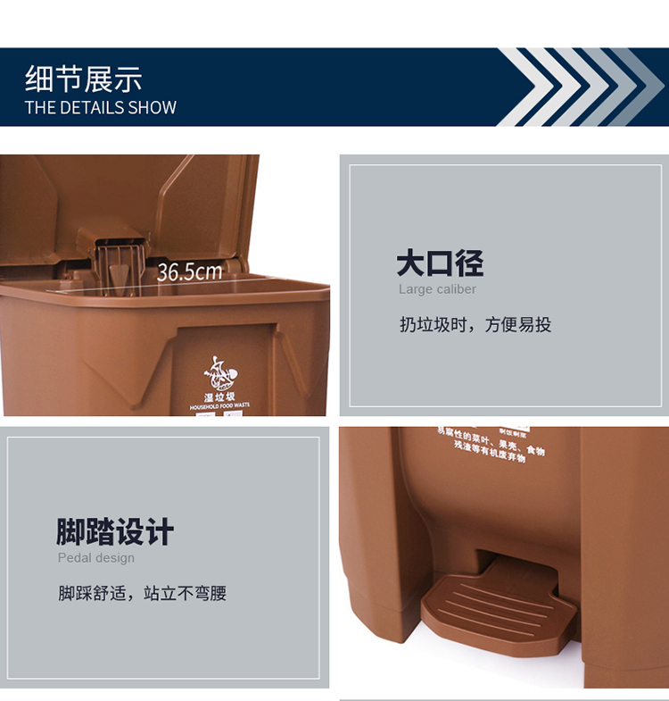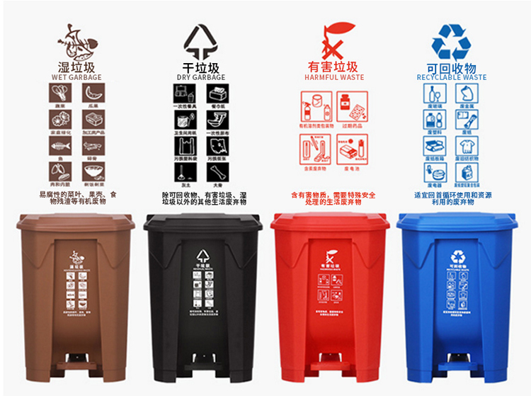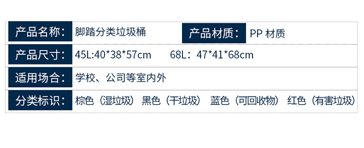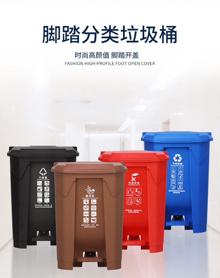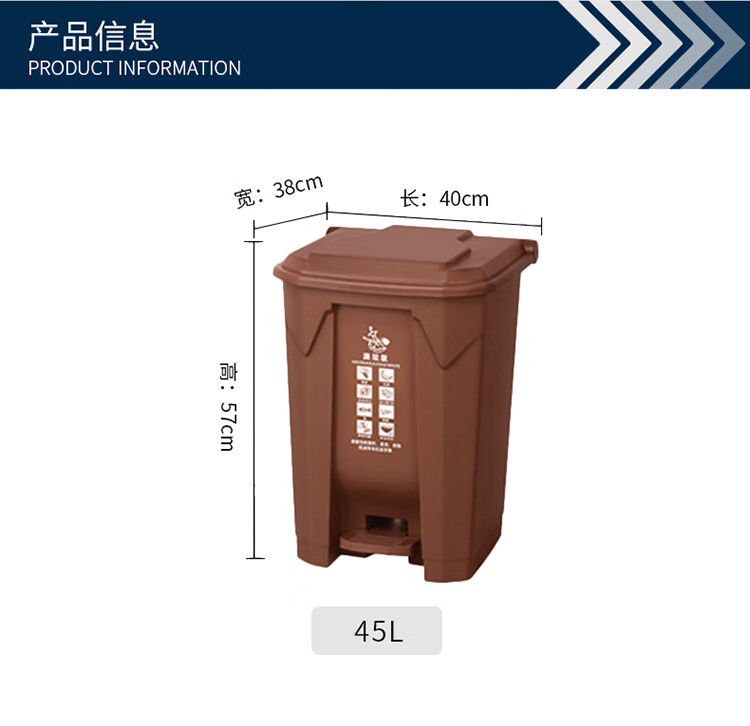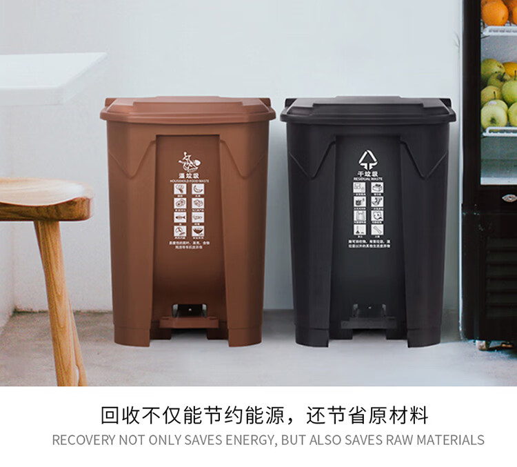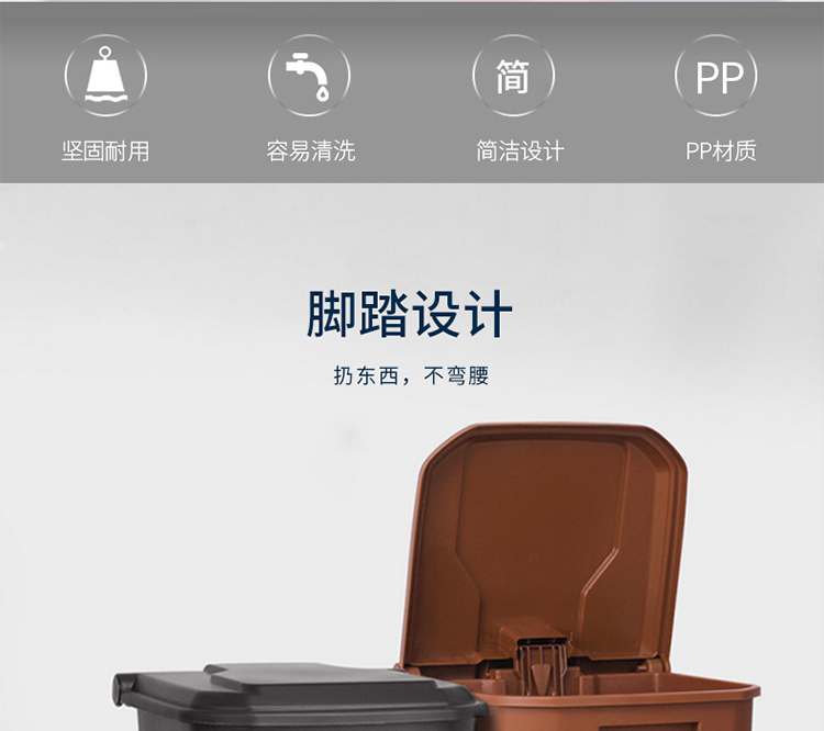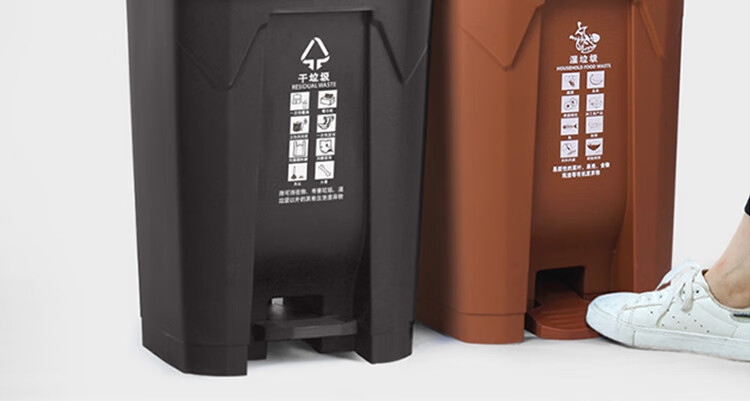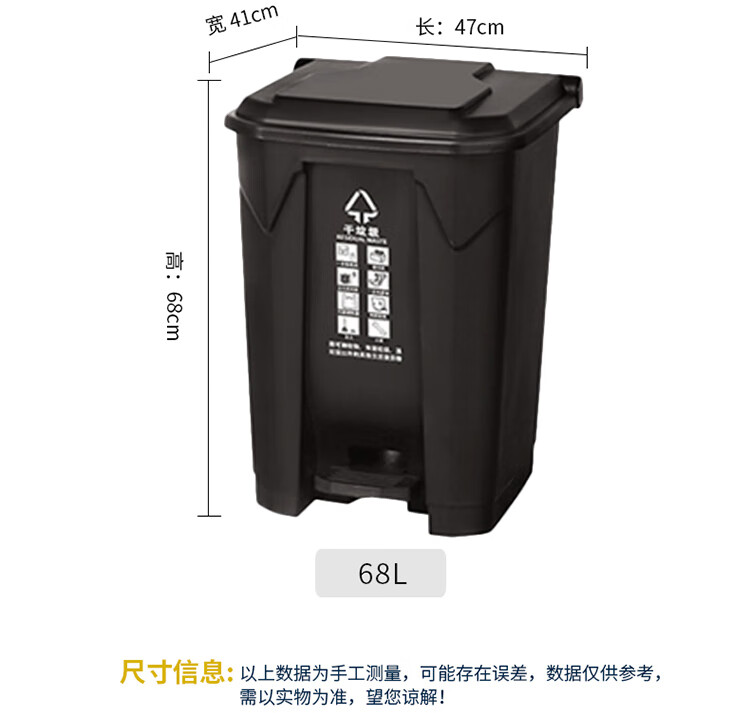科力邦(Kelibang) 垃圾桶 大号干湿分类脚踏垃圾桶翻盖户外垃圾桶商场环卫垃圾箱68L 黑色 KB1047 干垃圾