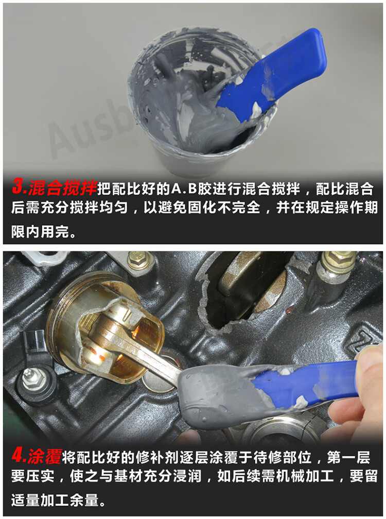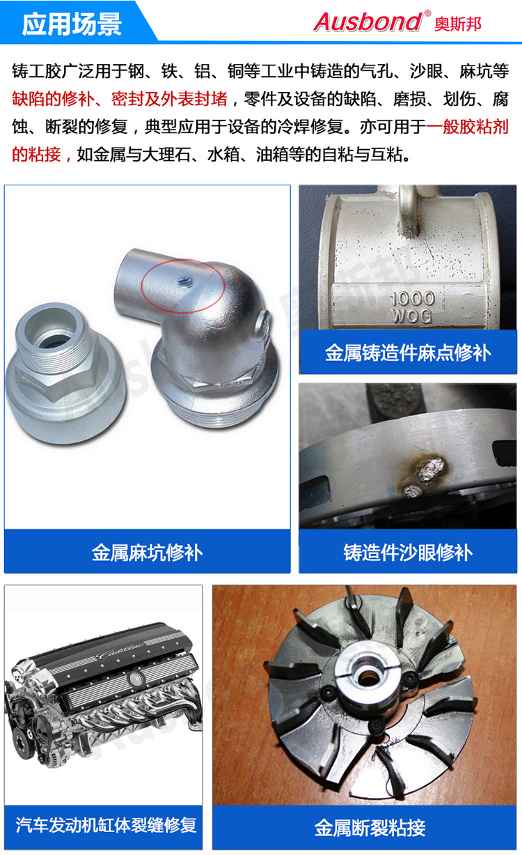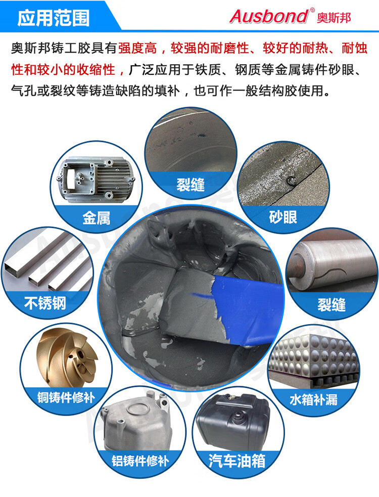 奥斯邦(Ausbond)铸工胶耐高温金属修补剂暖气片漏水修补堵漏补漏胶粘铁不锈钢铝砂眼填补代替焊接ab胶200克