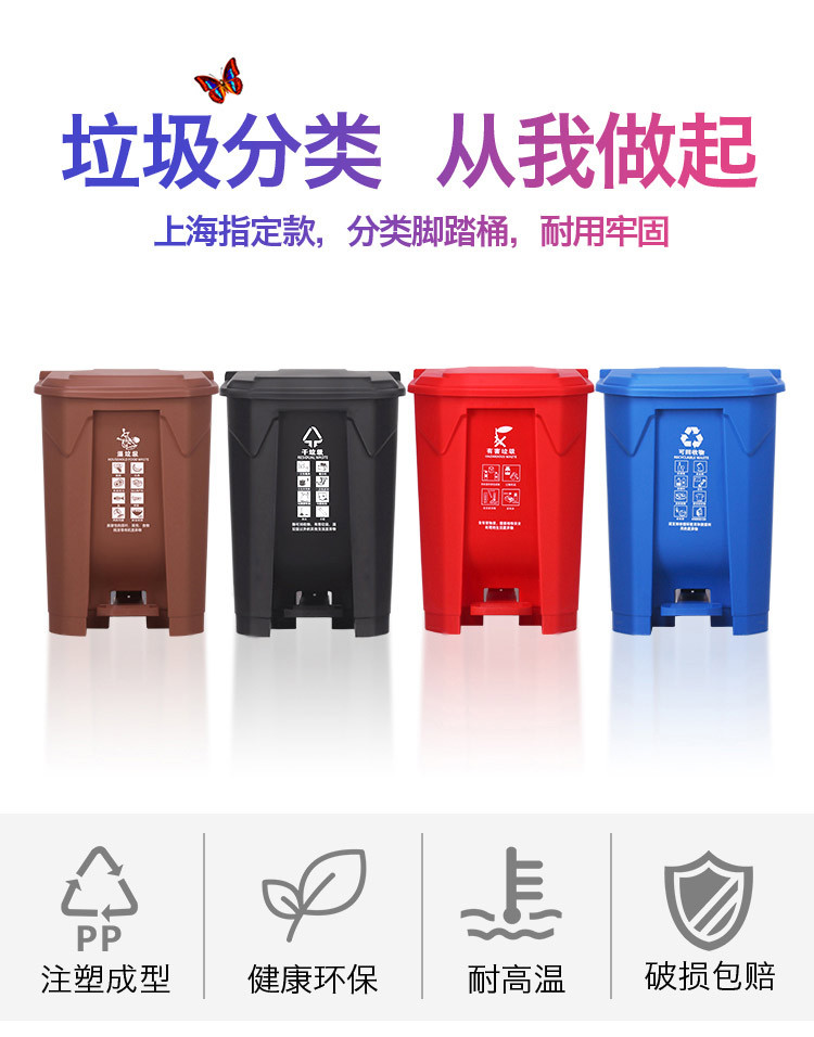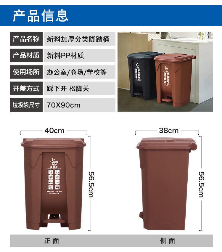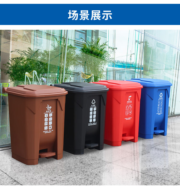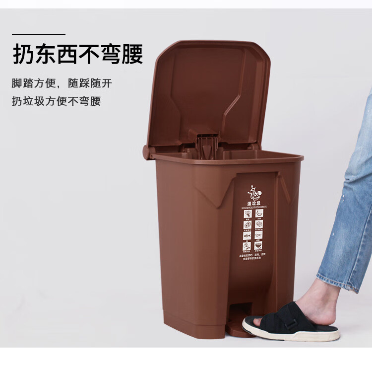 庄太太 【45L脚踏黑色干垃圾】上海脚踏垃圾桶大号干湿分离垃圾分类垃圾桶户外脚踩果带盖