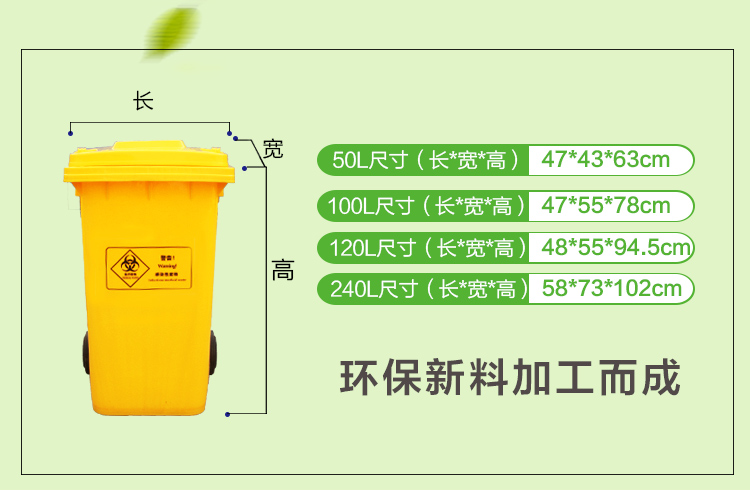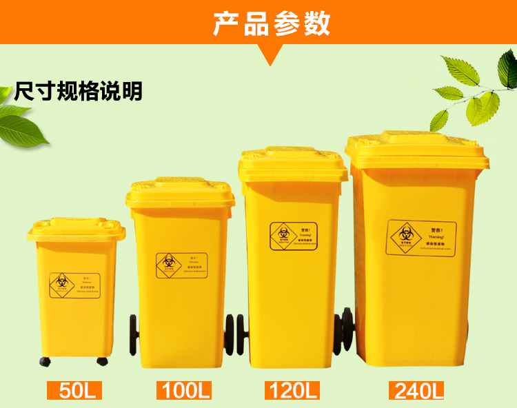 庄太太【50L带轮垃圾桶】医疗脚踏垃圾桶医院回收废物利器盒