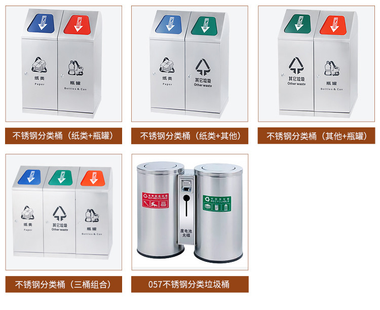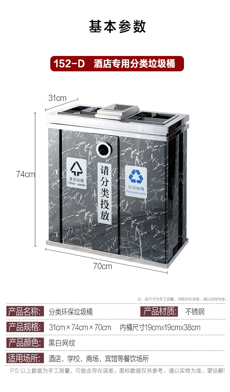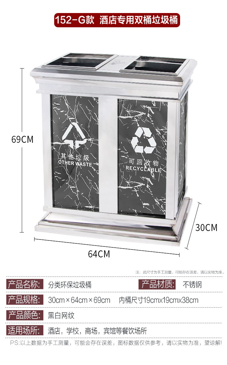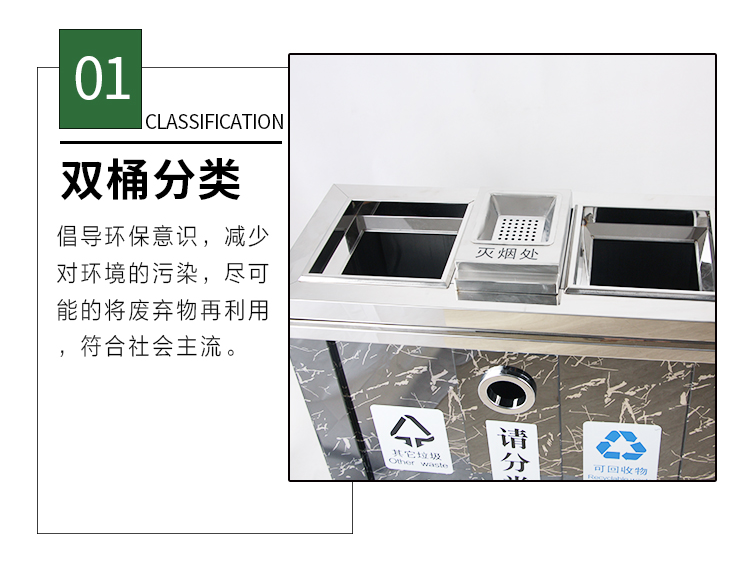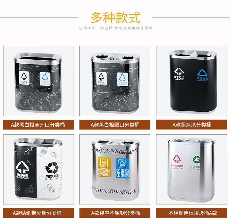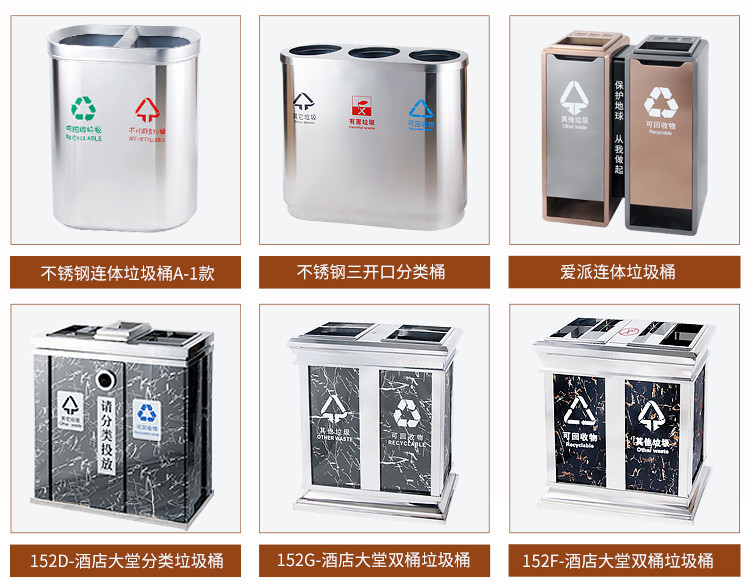 庄太太【地铁分类桶A】不锈钢环保室内分离分类垃圾桶商场超市酒店地铁车站垃圾筒箱