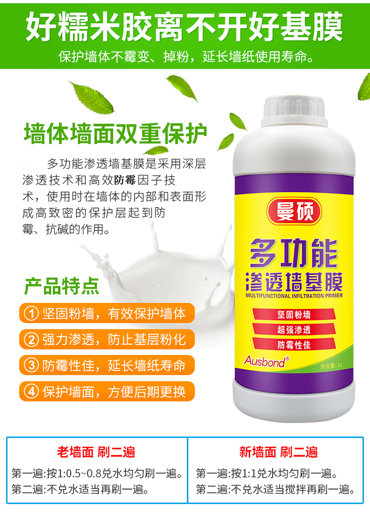 奥斯邦(Ausbond)多功能渗透墙基膜墙体墙面固化防潮防霉保护层胶处理剂粘贴墙纸壁纸墙布基膜辅料胶水1L
