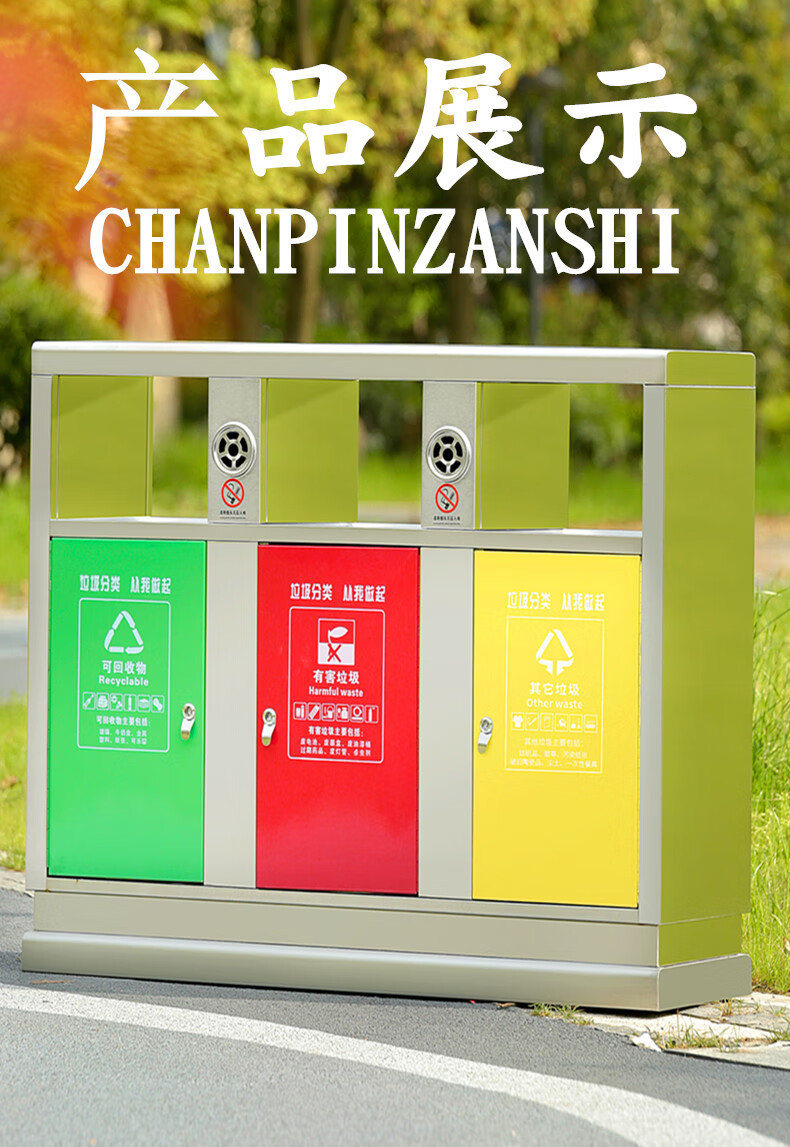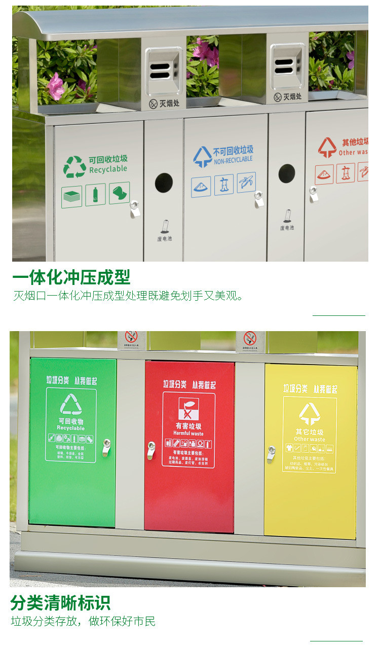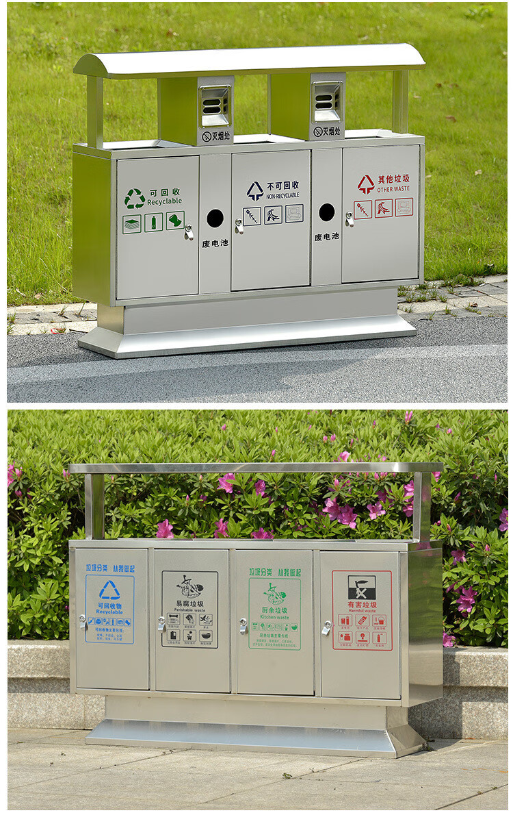 庄太太【不锈钢四分类】杭州户外三分类垃圾桶 四分类垃圾桶 室外小区垃圾分类桶果皮箱不锈钢
