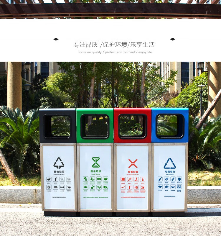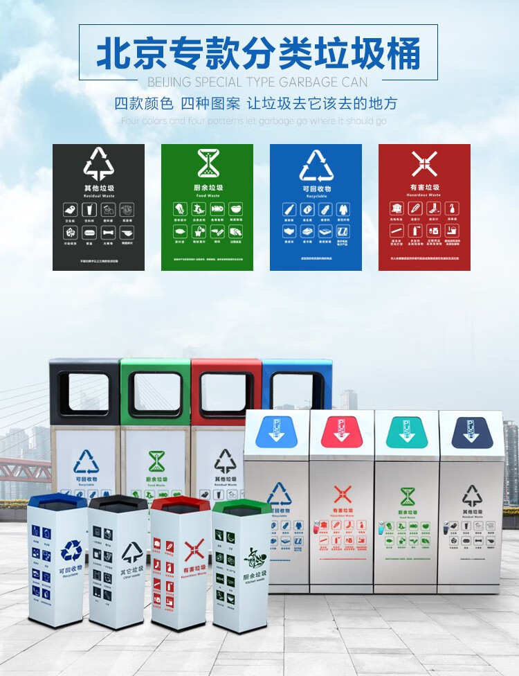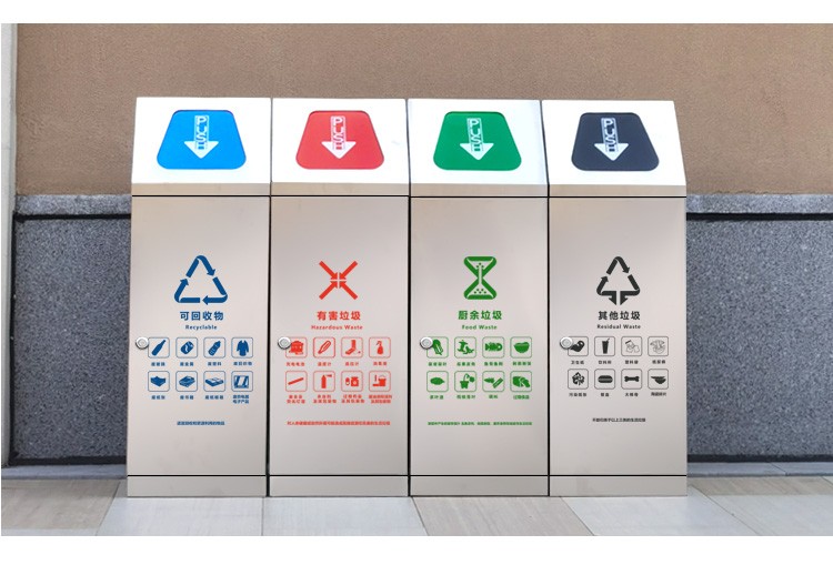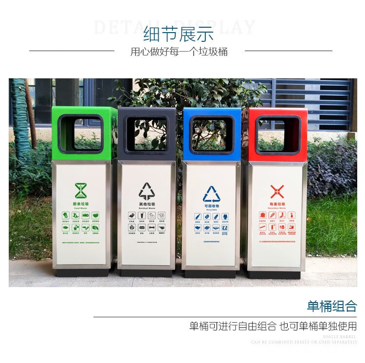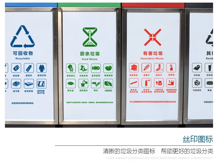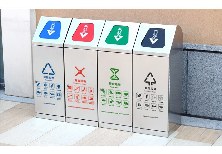 中环力安【MT-G49单桶】北京四分类垃圾桶室内不锈钢果皮箱垃圾箱大号三分类专用桶