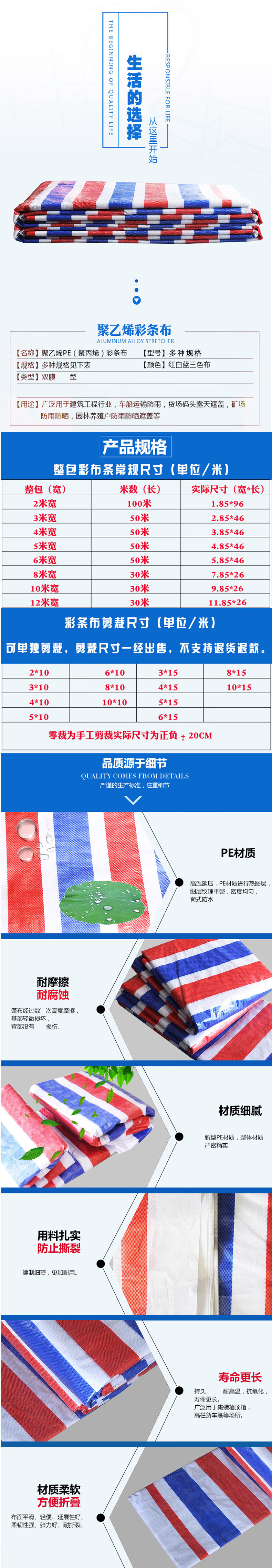 夜霸途三色彩条布防水防晒加厚防雨布装修户外遮阳防尘塑料油布雨棚篷布(10米X3米 双面覆膜)