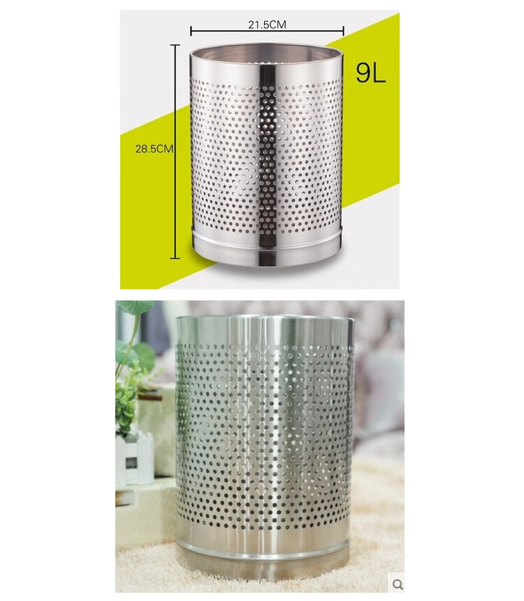 庄太太【不锈钢】不锈钢漏孔镂空酒店洗浴中心无盖圆形垃圾桶