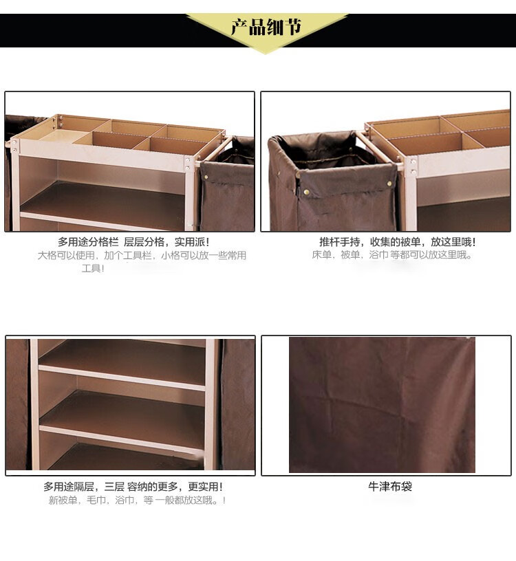 庄太太【双边加厚6寸轮】新布草车酒店双边客房工作车收纳布草车房口车清洁服务车推车