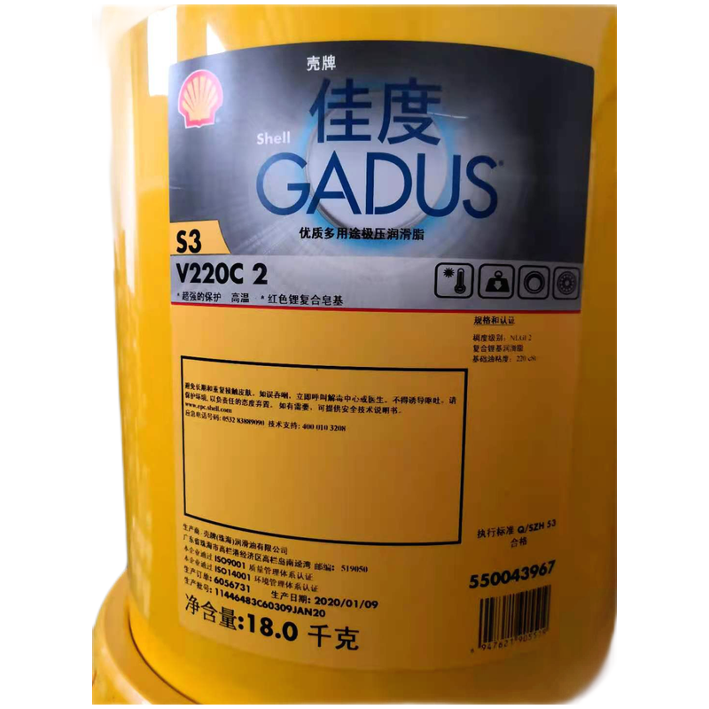 壳牌(Shell)GADUS S3V220C 2 优质多用途极压润滑脂 红色|高温|佳度2号轴承油脂 18Kg/桶