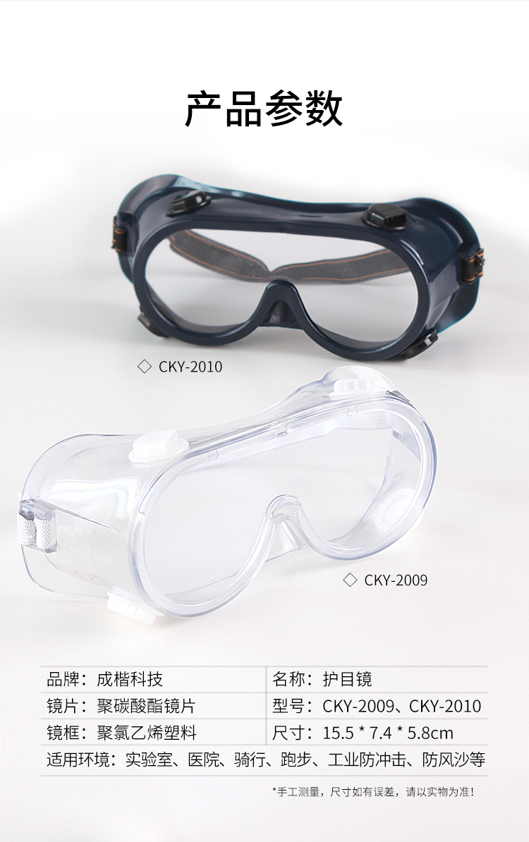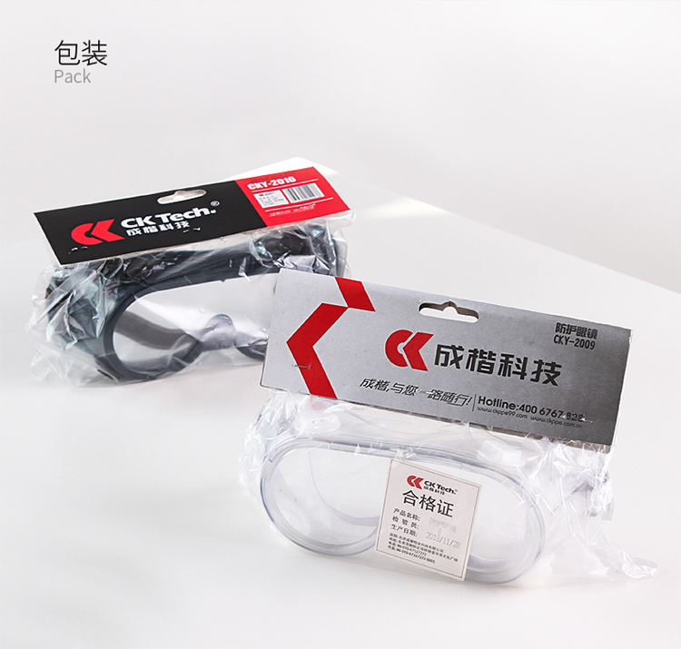 品牌:成楷科技 名称:防护眼镜 型号:CKY-2009 重量:约60g 特点:防雾、防尘、防风、防飞溅