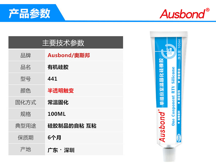 奥斯邦(Ausbond)441硅胶胶水粘硅胶条硅橡胶金属塑料ABS密封圈胶条修补粘合剂耐高温软性防水粘接胶100ml