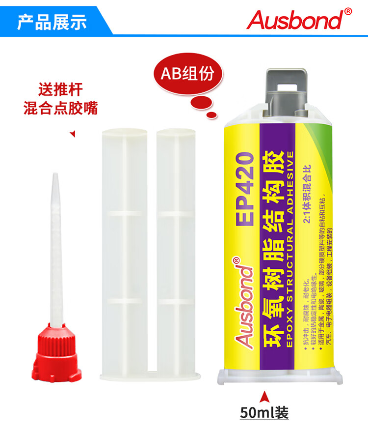 奥斯邦(Ausbond)EP420环氧树脂结构胶粘金属铁沾不锈钢铝合金陶瓷玻璃塑料双组份AB胶高强度黑色胶水50ml