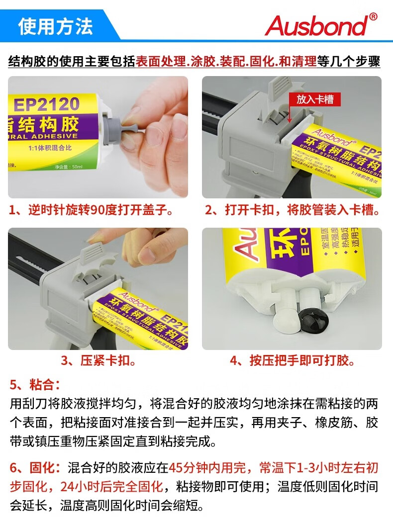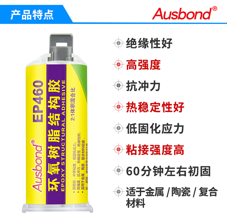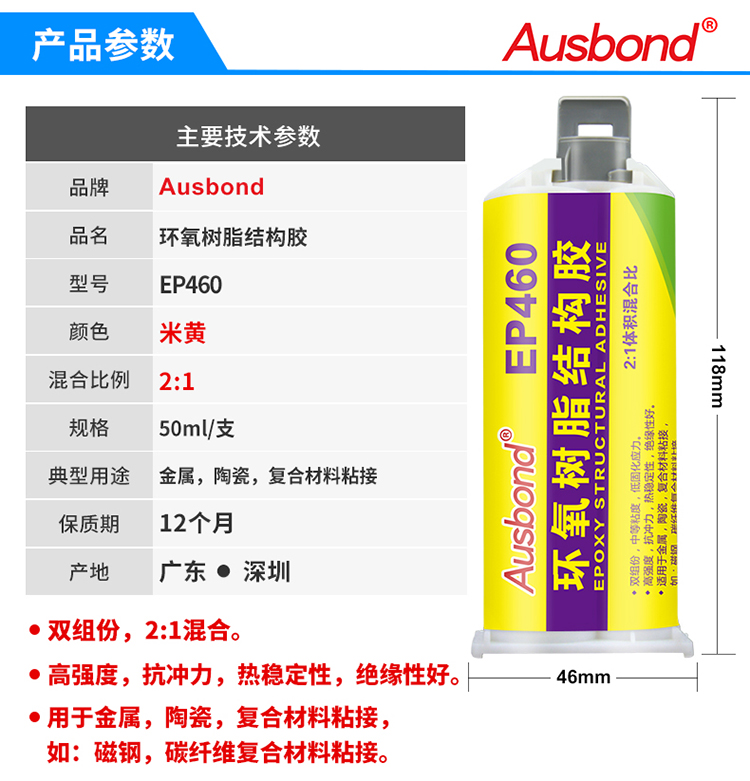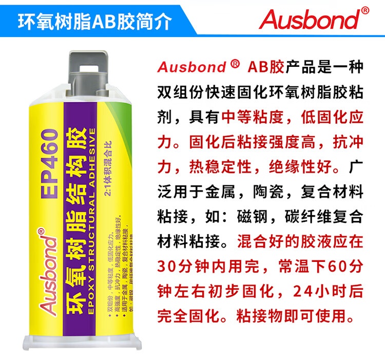 奥斯邦(Ausbond)EP460环氧树脂结构胶粘金属陶瓷碳纤维沾塑料木材木头石材瓷砖粘合剂双组分ab胶水50ml
