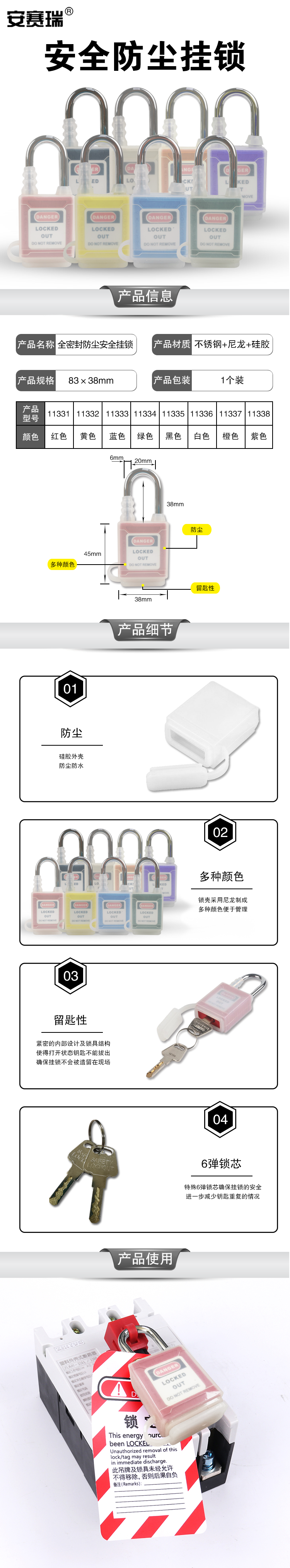 安赛瑞 全密封防尘安全挂锁(红)上锁挂牌锁头 工程塑料钢制锁梁工业挂锁 LOTO安全挂锁 11331
