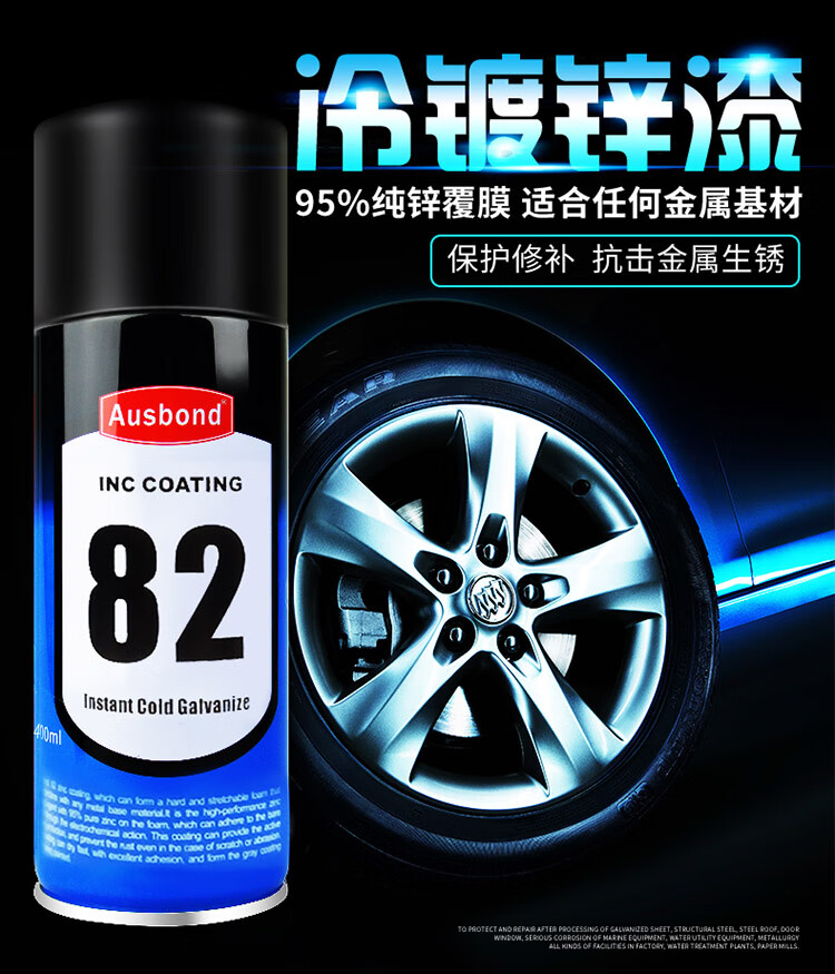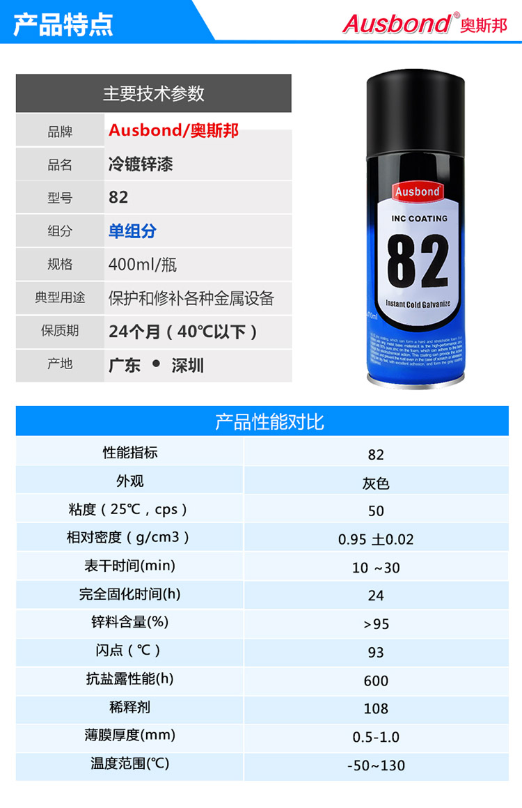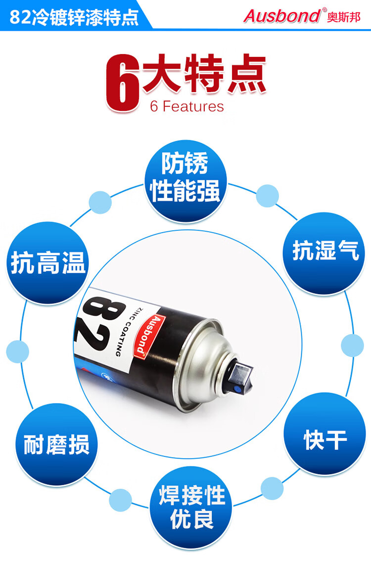 奥斯邦(Ausbond)82冷镀锌漆自喷修补漆工业金属漆防锈漆不锈钢铁门桥梁护栏杆防绣防腐油漆涂料胶400ml
