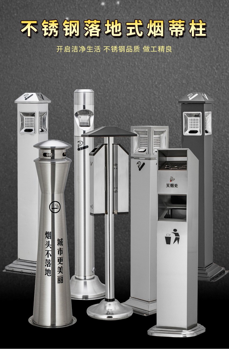 庄太太【定制款01】定制灭烟垃圾桶商场立式烟蒂柱不锈钢灭烟桶户外吸烟区烟灰缸室外落地灭烟垃圾桶