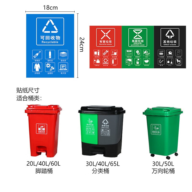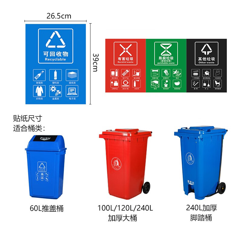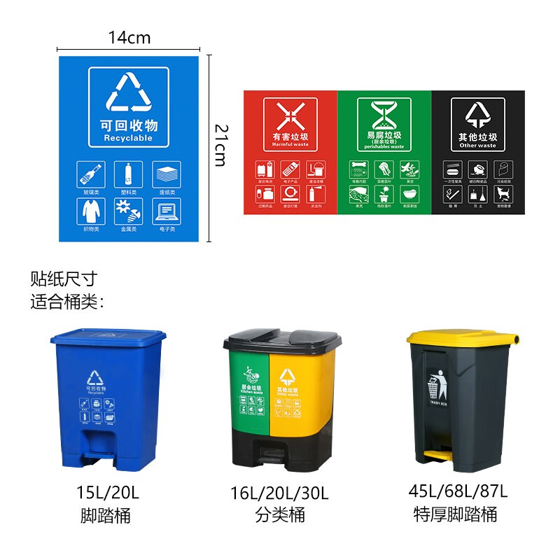 庄太太【14*21cm绿色易腐贴纸】新国标分类垃圾桶标志标识贴纸