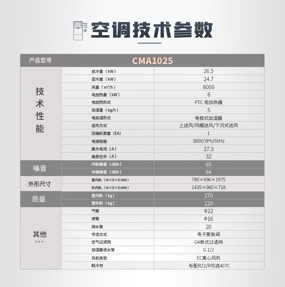 【VISENCH】威神大型高效机房空调专业级 风冷档案室服务器精密空调25KW恒温恒湿下送风CMA1025D