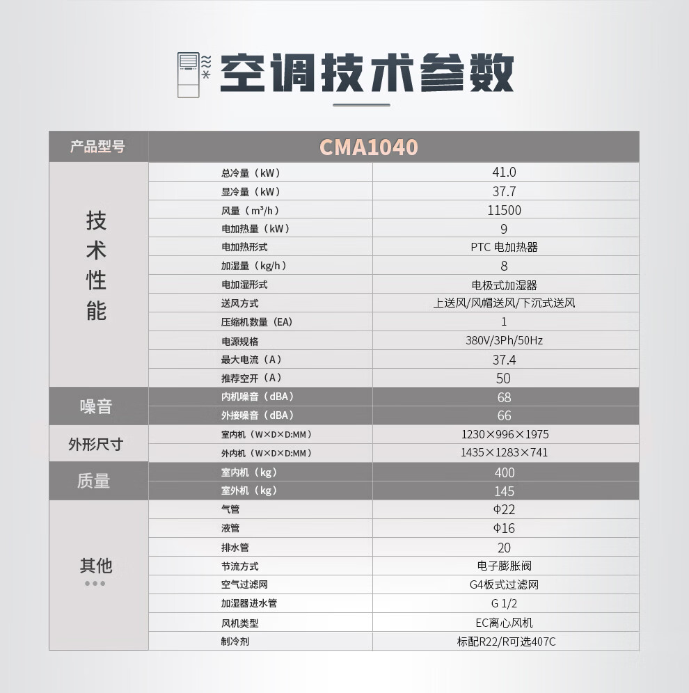 【VISENCH】威神大型高效机房空调专业级 风冷档案室服务器精密空调40KW恒温恒湿下送风CMA1040D