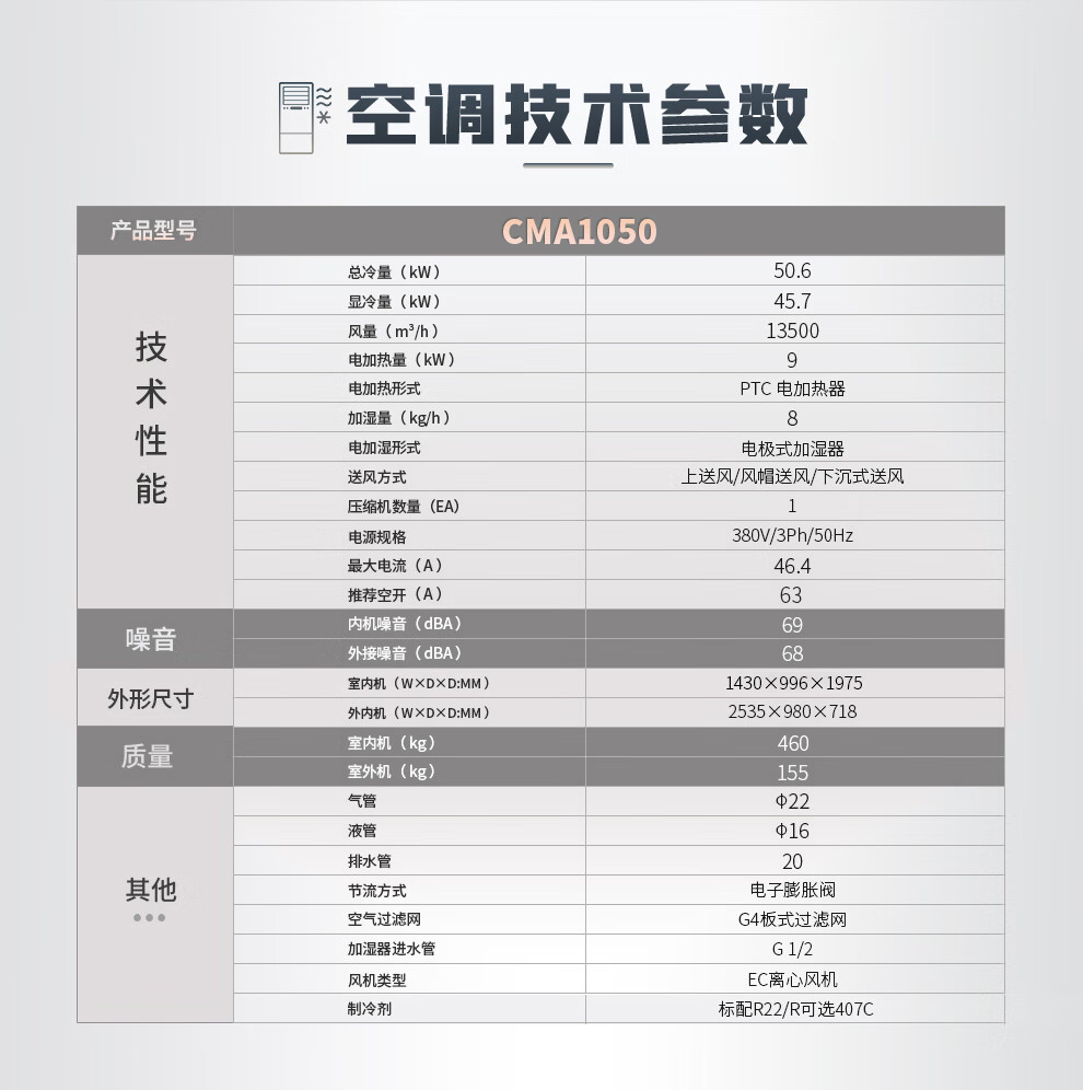 【VISENCH】威神大型高效机房空调专业级 风冷档案室服务器精密空调50KW恒温恒湿下送风CMA1050D