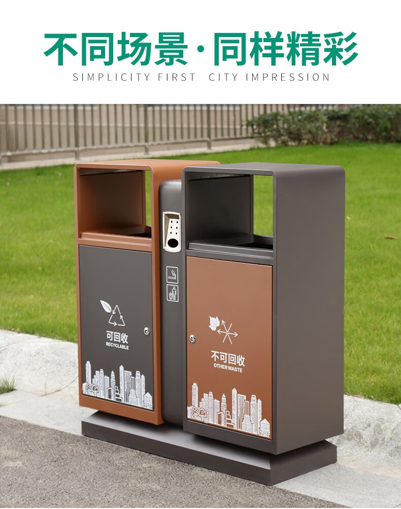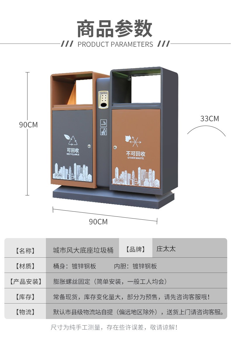 庄太太【升级款双桶(可印其他标识)】户外垃圾桶果皮箱不锈钢分类大号垃圾箱室外小区物业定制