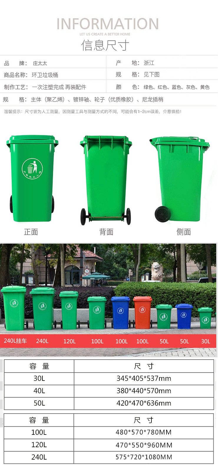 庄太太【灰色厨余垃圾240L挂车】江苏苏州新国标户外大号垃圾桶环卫商用垃圾箱