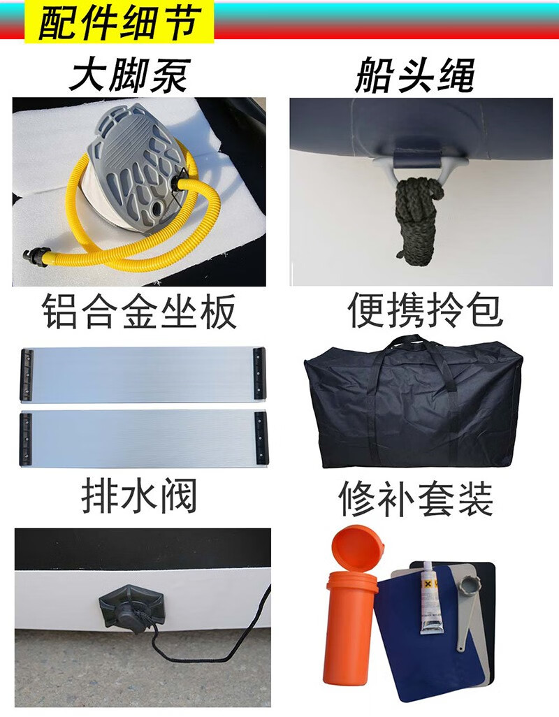 速澜【3.6米可坐6人+马达】冲锋舟快艇充气船橡皮艇加厚耐磨硬底双人皮划艇