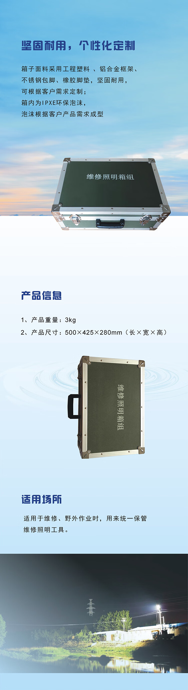 适用于维修、野外作业时,用来统一保管维修照明工具。