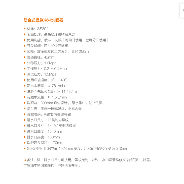 润旺达 WJH1107 复合式洗眼器 黄色 304不锈钢+环氧静电防腐涂层