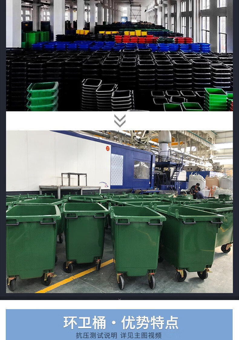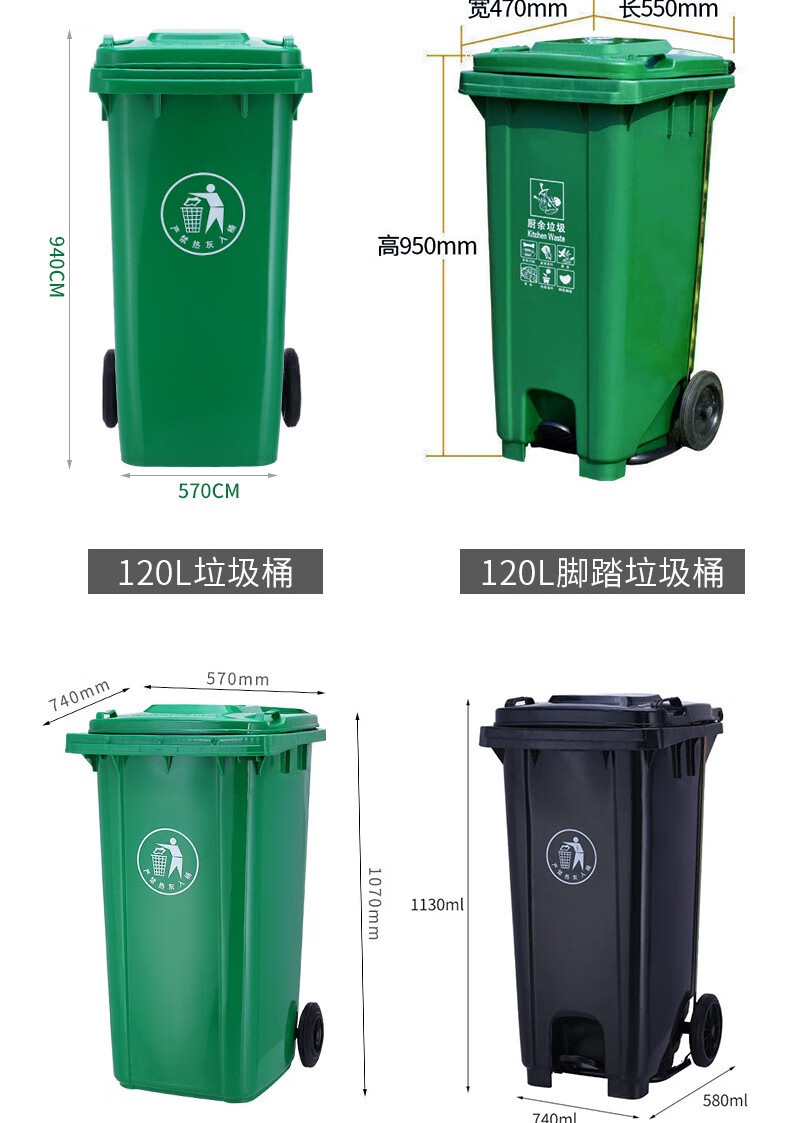 科力邦(Kelibang) 户外垃圾桶 大号加厚120L商用塑料环卫垃圾桶带盖轮工业小区物业翻盖果皮箱 蓝色 单个