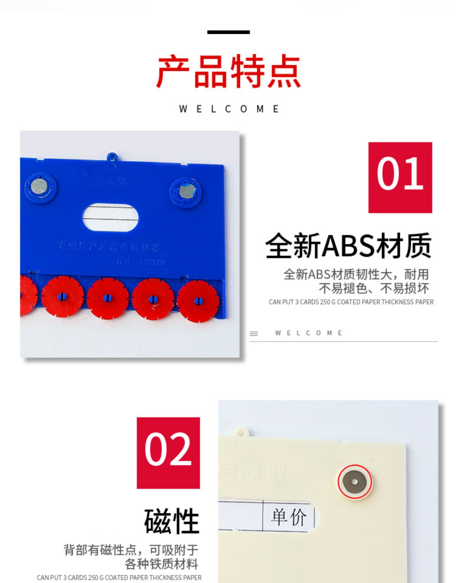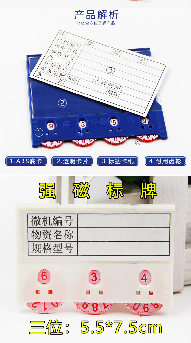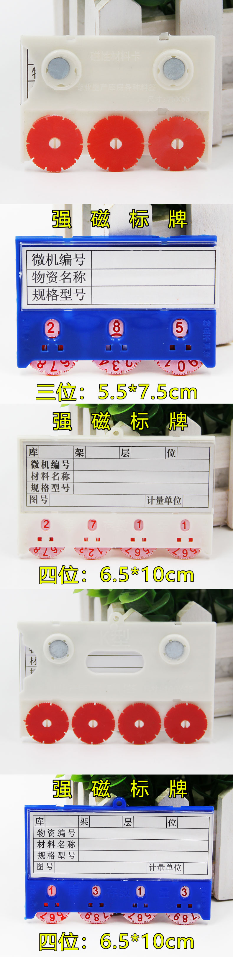 斯图磁性标签卡标识牌仓库管理卡转盘带齿轮物料卡仓位卡 三位数蓝色55*75mm 100个装