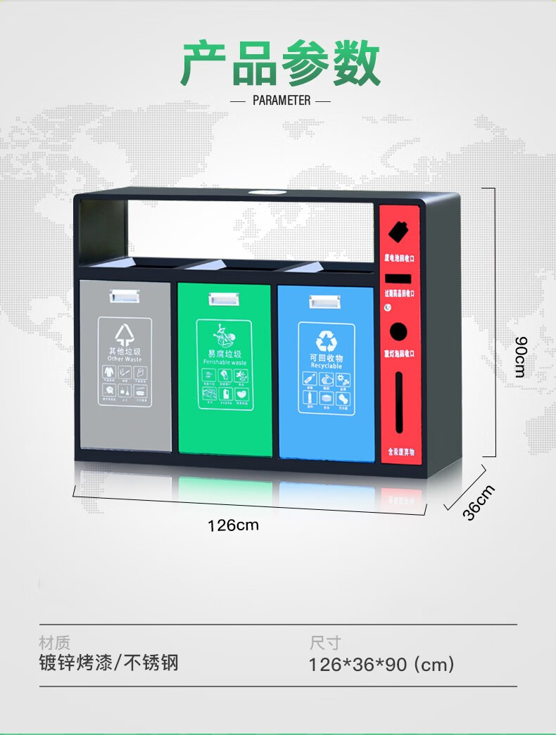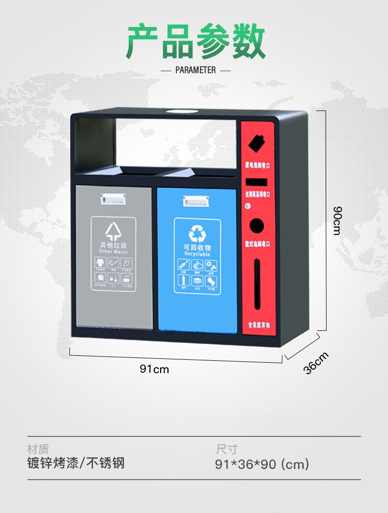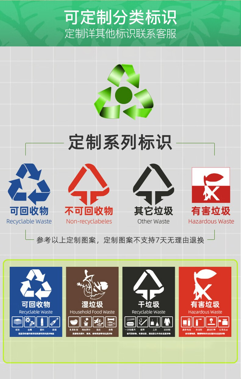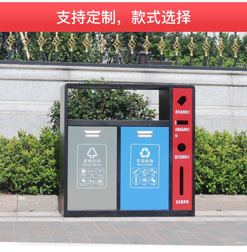 中环力安【干湿二分类】户外垃圾桶不锈钢环卫分类室外小区方形双果皮箱公园景区桶大垃圾