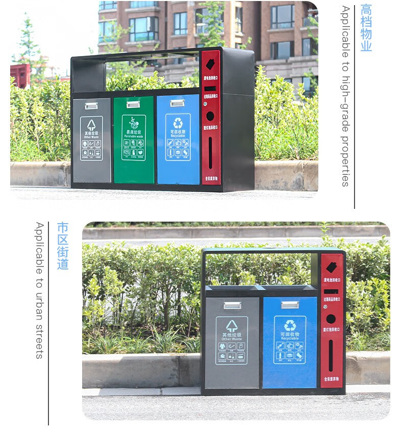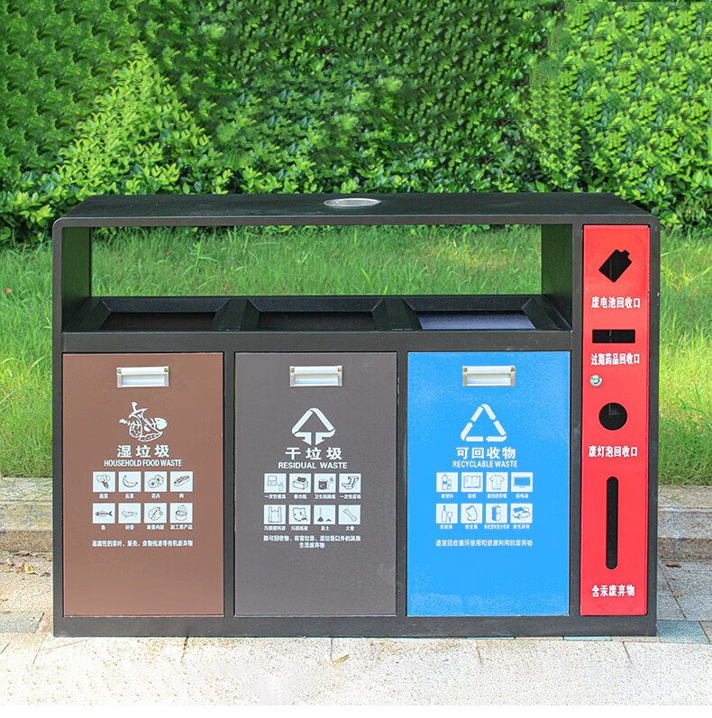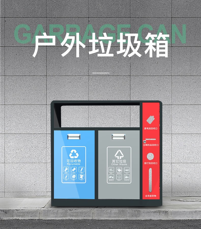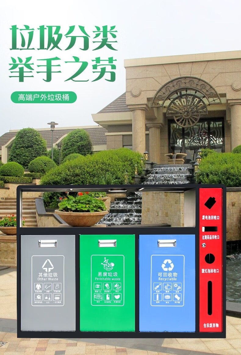 中环力安【干湿二分类】户外垃圾桶不锈钢环卫分类室外小区方形双果皮箱公园景区桶大垃圾