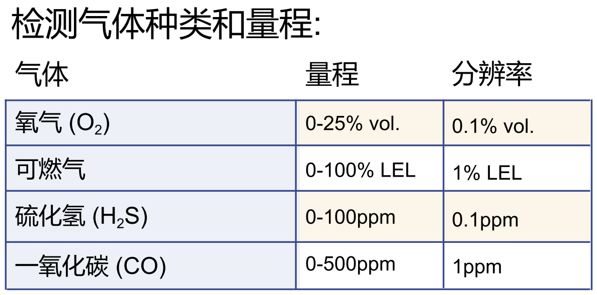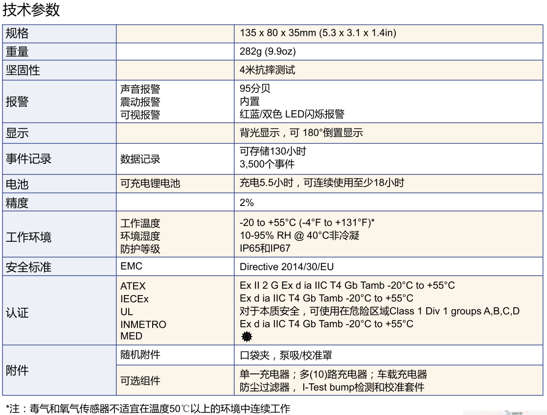 *注:毒气和氧气传感器不适宜在温度50℃以上的环境中连续工作