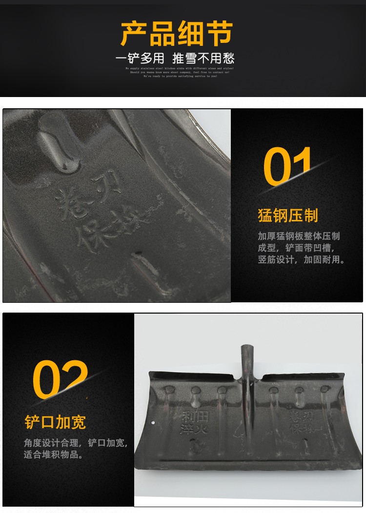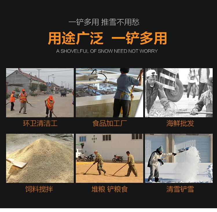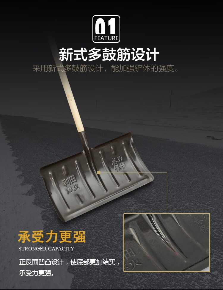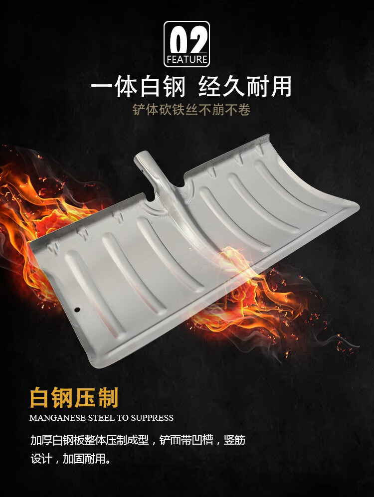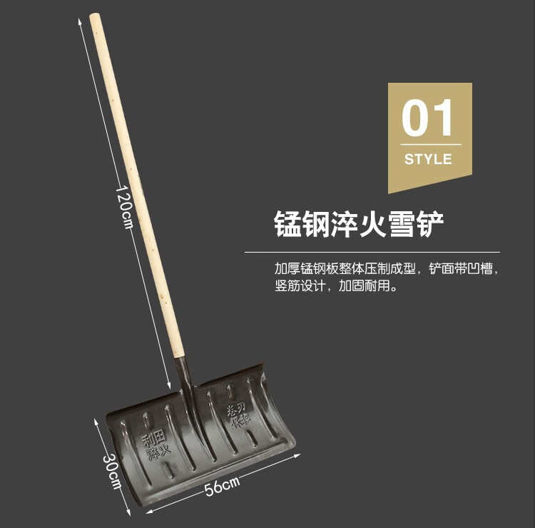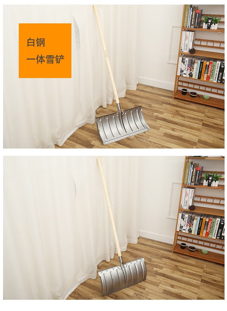中环力安【锯齿冰铲1.2m带木杆】全钢推雪铲除冰大号锰钢雪铲淬火加厚铲雪锹钢铲子推雪铲除雪铲雪工具