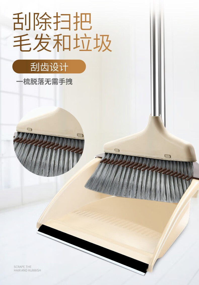 中环力安【升级两件套】扫地簸箕可拆卸加密软刷毛挂齿设计塑料扫地刮水