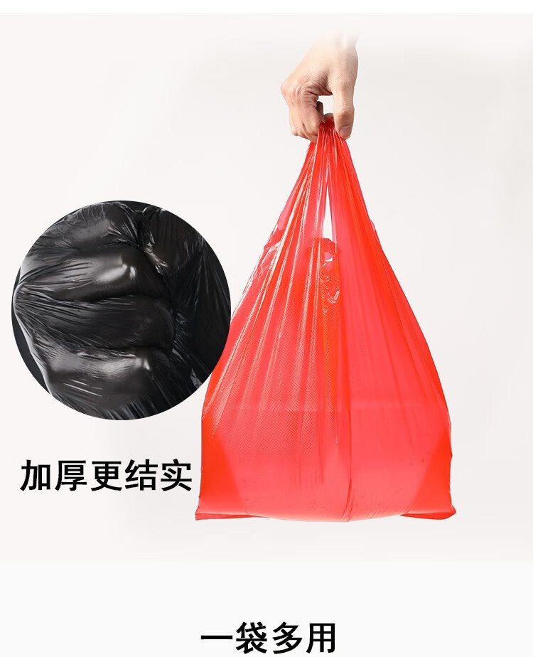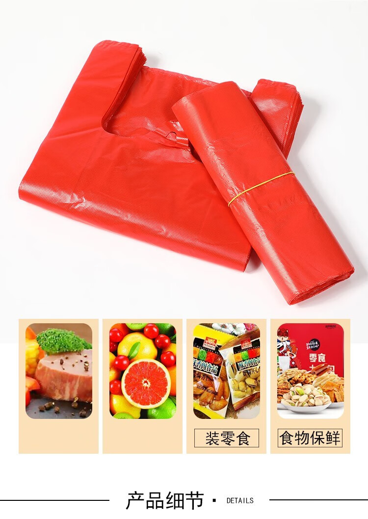 中环力安【26*38cm500只】红色塑料背心袋加厚大中小号手提一次性水果蔬菜购物方便袋