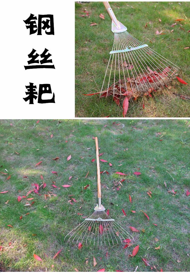 中环力安【钢丝硬齿22齿耙+1.2米木柄】落叶草坪草耙子钢丝搂草爬子扫地扒草不锈钢