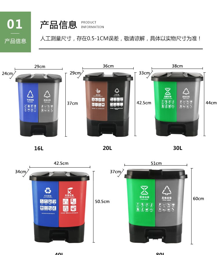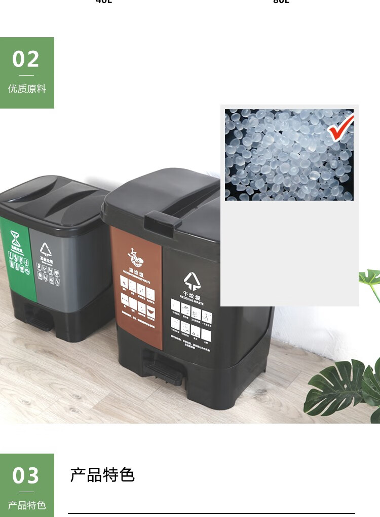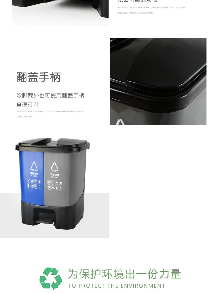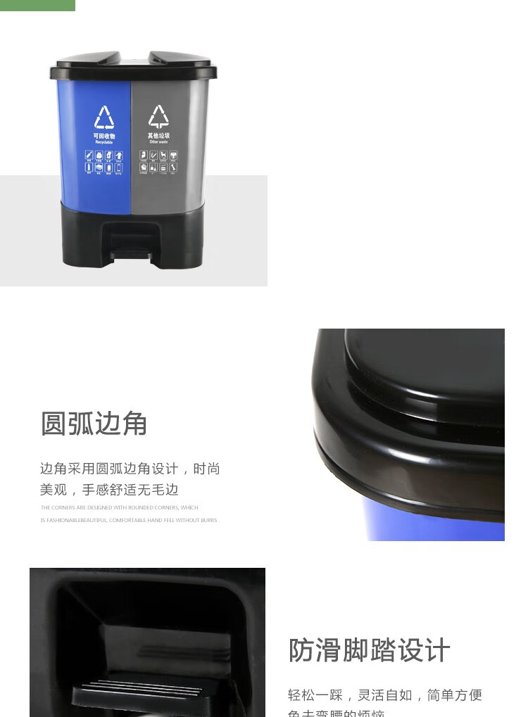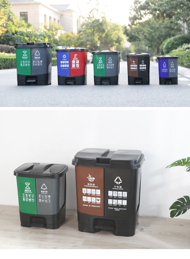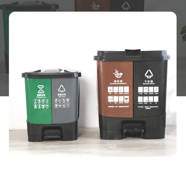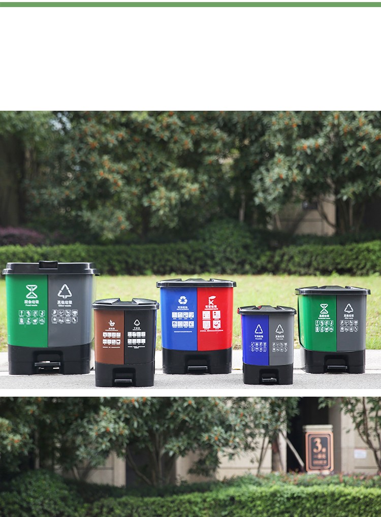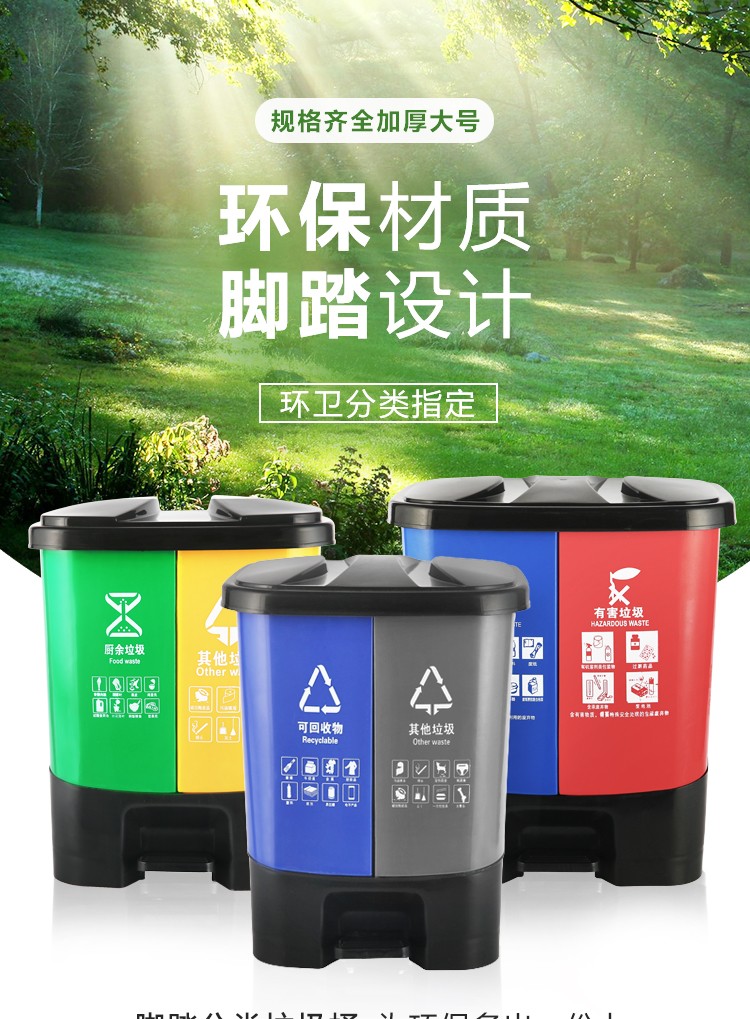 中环力安【30L绿灰(厨余+其他)】垃圾分类垃圾桶带盖大号双桶干湿脚踏商用餐饮公共场合